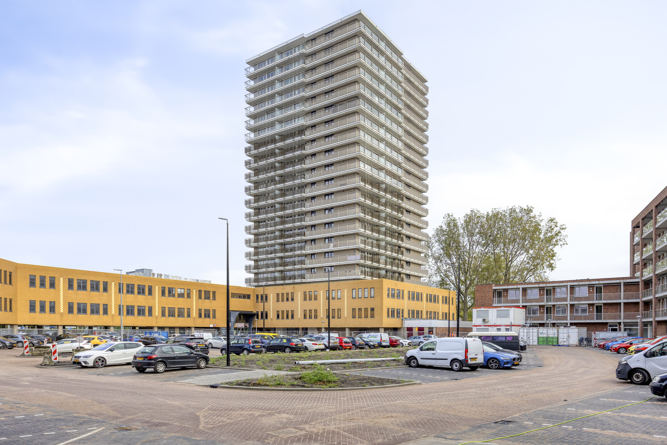 Het complex beschikt over een ruime entree die van twee zijden toegankelijk is. Vanuit hier brengt de lift u comfortabel naar de zestiende verdieping. Een brede, inpandige galerij biedt toegang tot de verschillende appartementen, waaronder nummer 142.