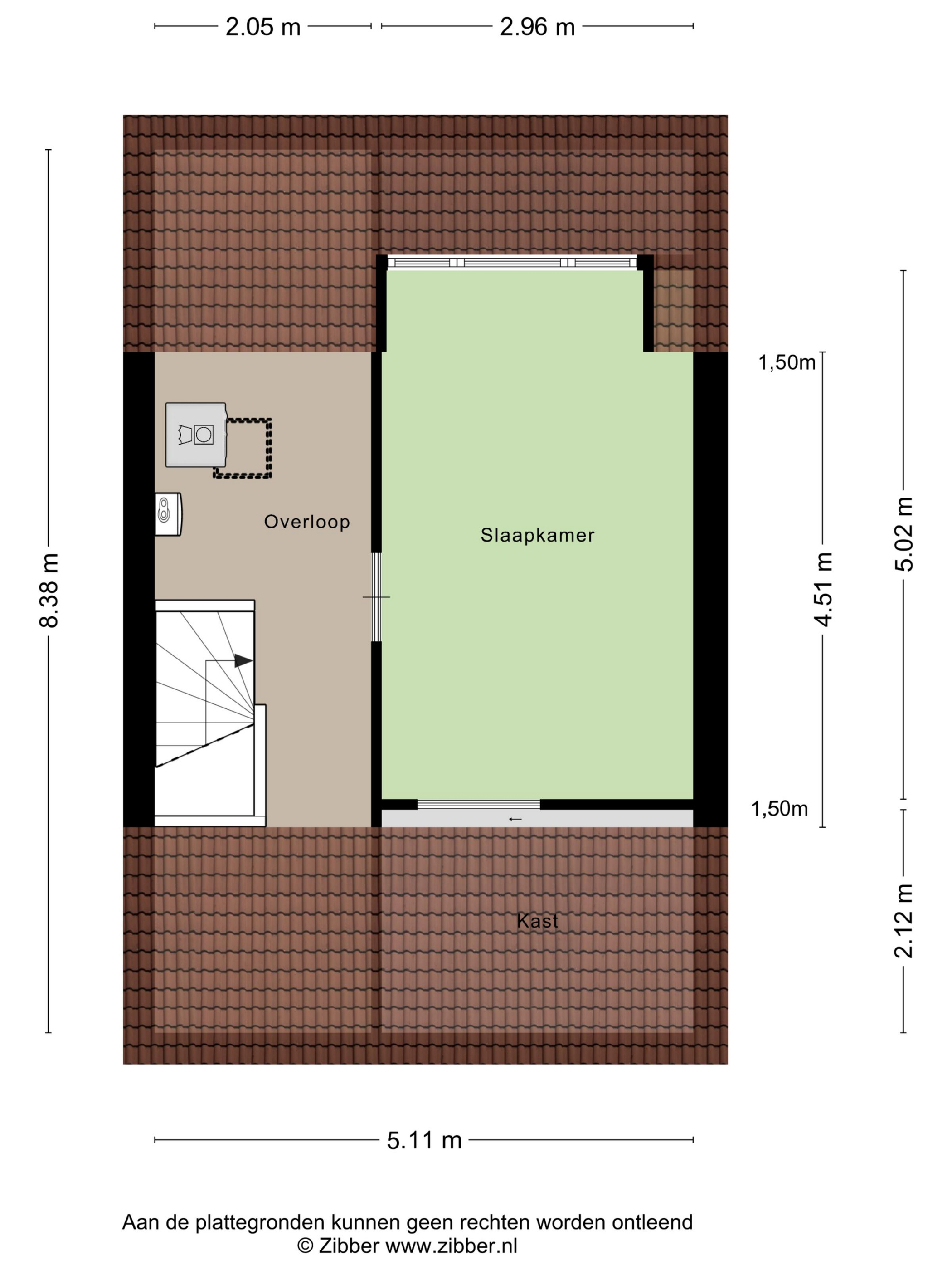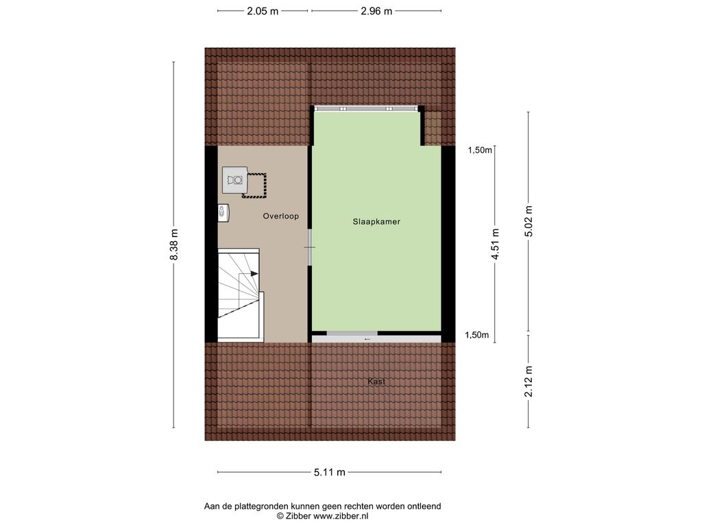 De trap loopt door naar de tweede verdieping, waar zich een zeer ruime slaapkamer bevindt van respectievelijk 15m². Deze slaapkamer is uitgerust met een dakkapel. Aan de voorzijde van deze verdieping ligt een ruime overloop die dienstdoet als wasruimte, met de opstelplaatsen voor de wasmachine, droger en de cv-ketel uit 2020.