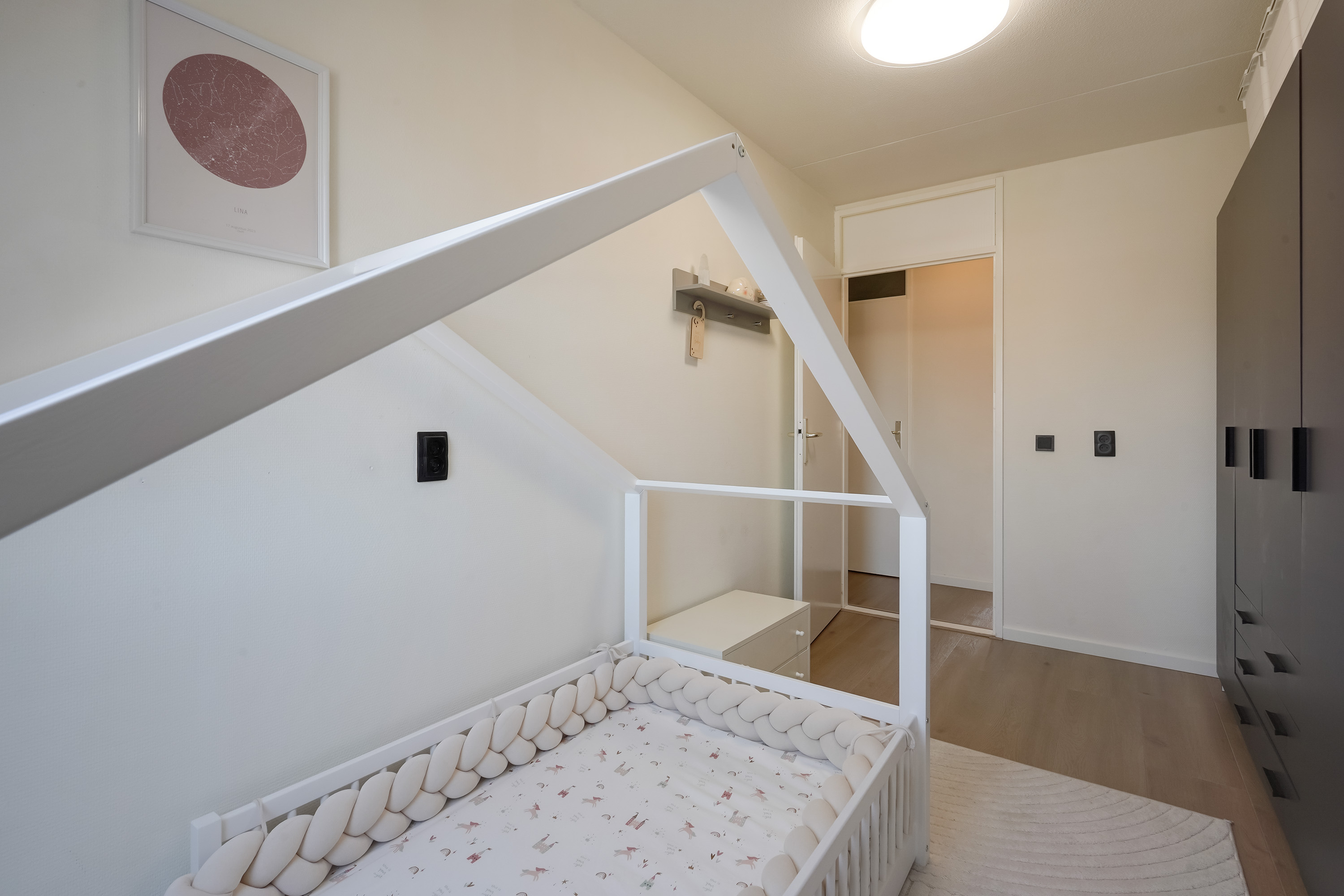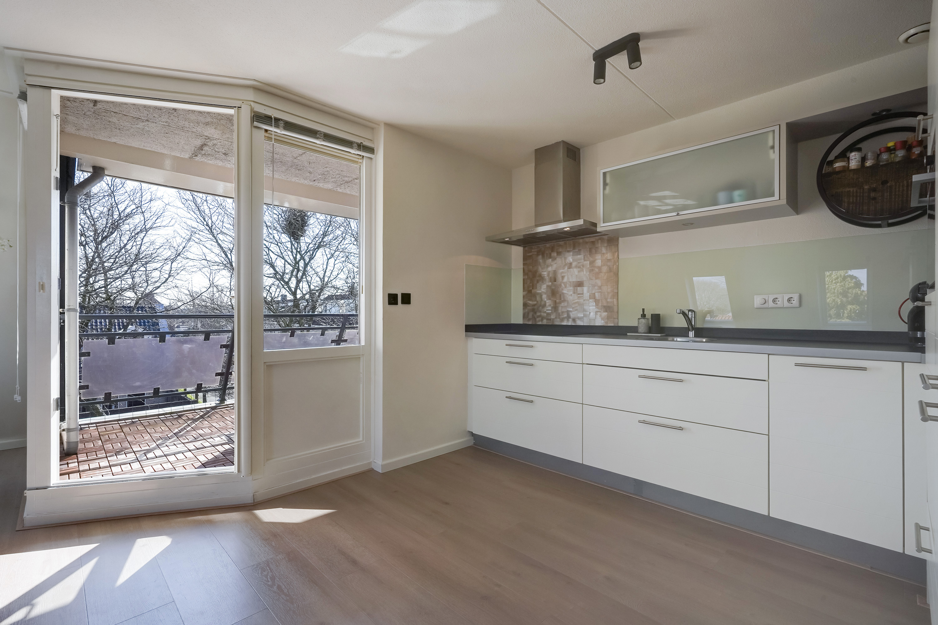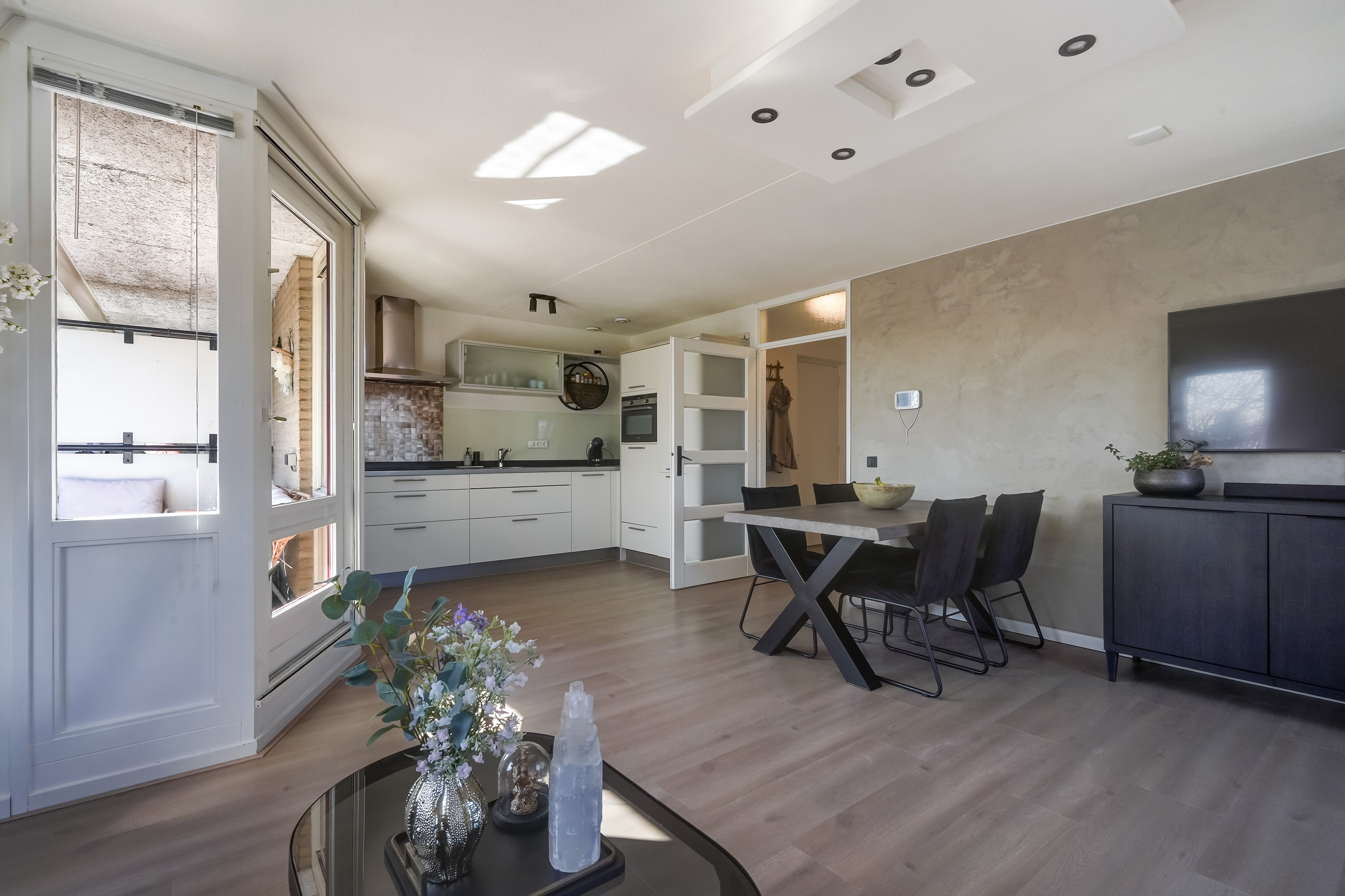 De woonkamer is heerlijk licht en vormt samen met de open keuken een fijne leefruimte. Vanuit de woonkamer heb je direct toegang tot het balkon, waar je kunt genieten van de zon en het vrije uitzicht. Daarnaast beschikt de woning over twee goed bemeten slaapkamers, ideaal voor starters, een stel of een thuiswerkplek.