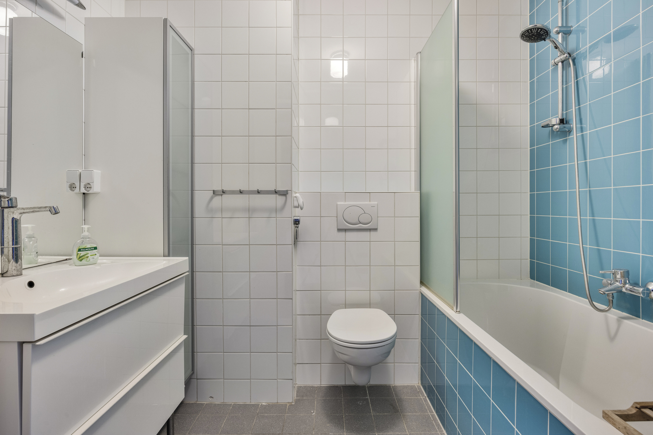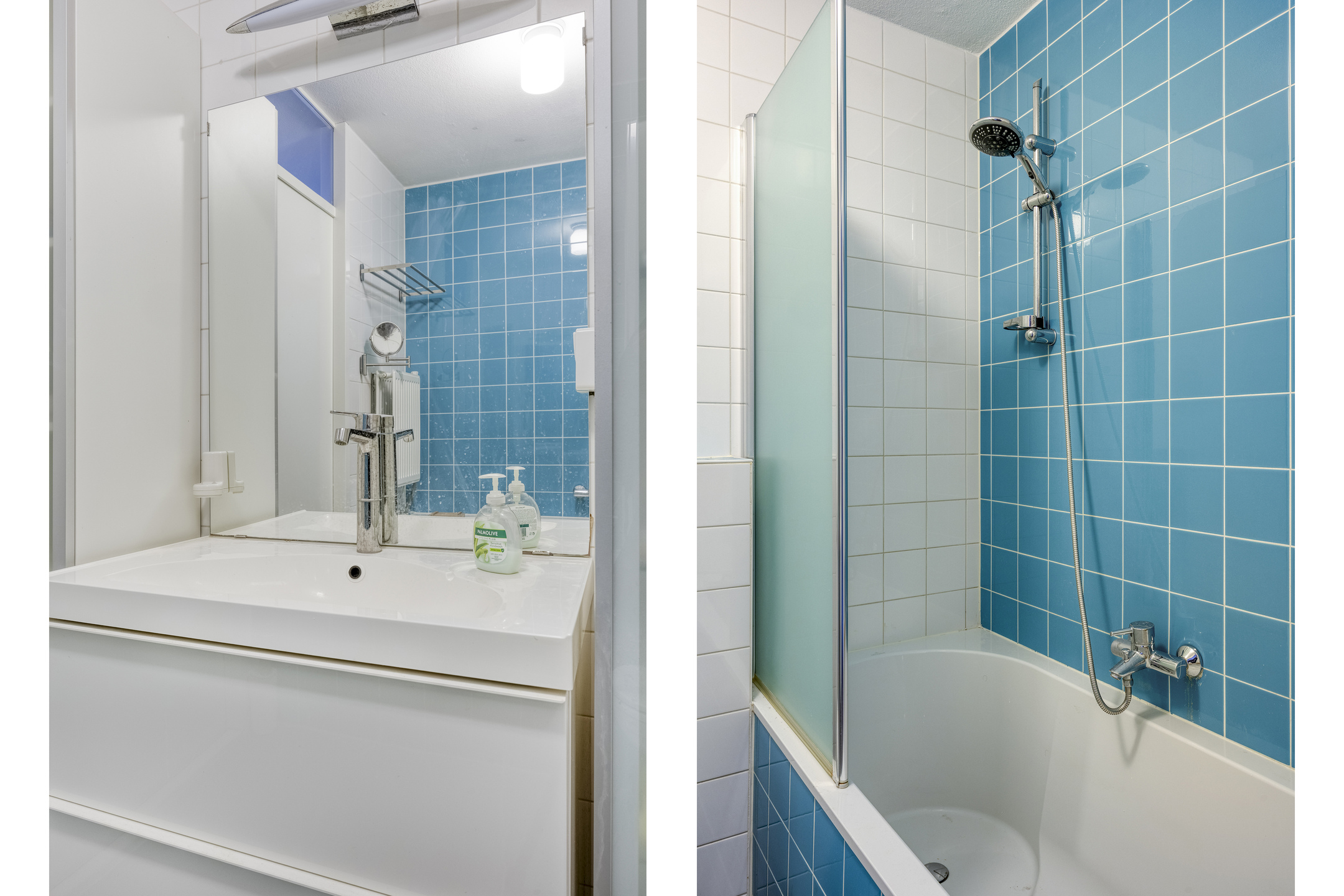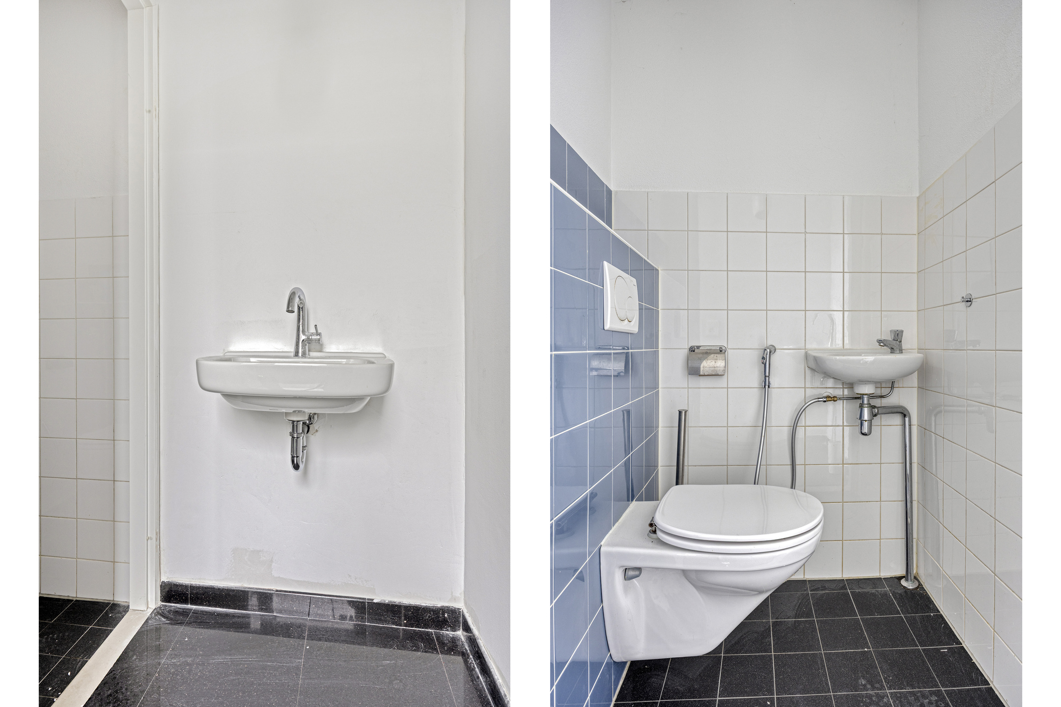 On this level, there are two generously sized bedrooms. The centrally located bathroom is fully equipped with a bathtub, a second toilet, and a washbasin with vanity unit.