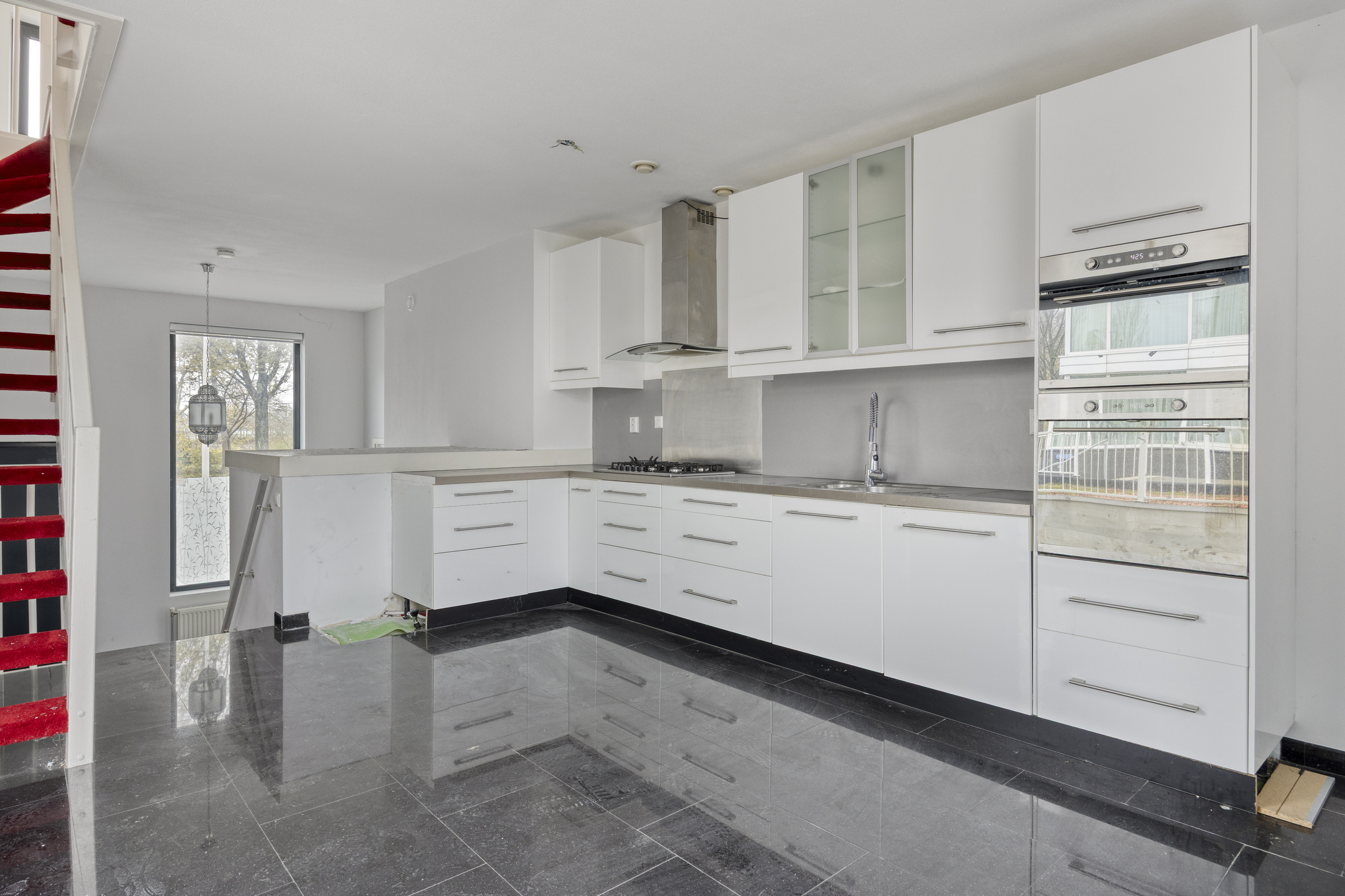 De royale en lichte woon-/eetkamer vormt het hart van het huis. Dankzij de hoekligging geniet u hier van veel daglicht. Een heerlijke plek voor gezellige gezinsmomenten of ontspannen avonden.