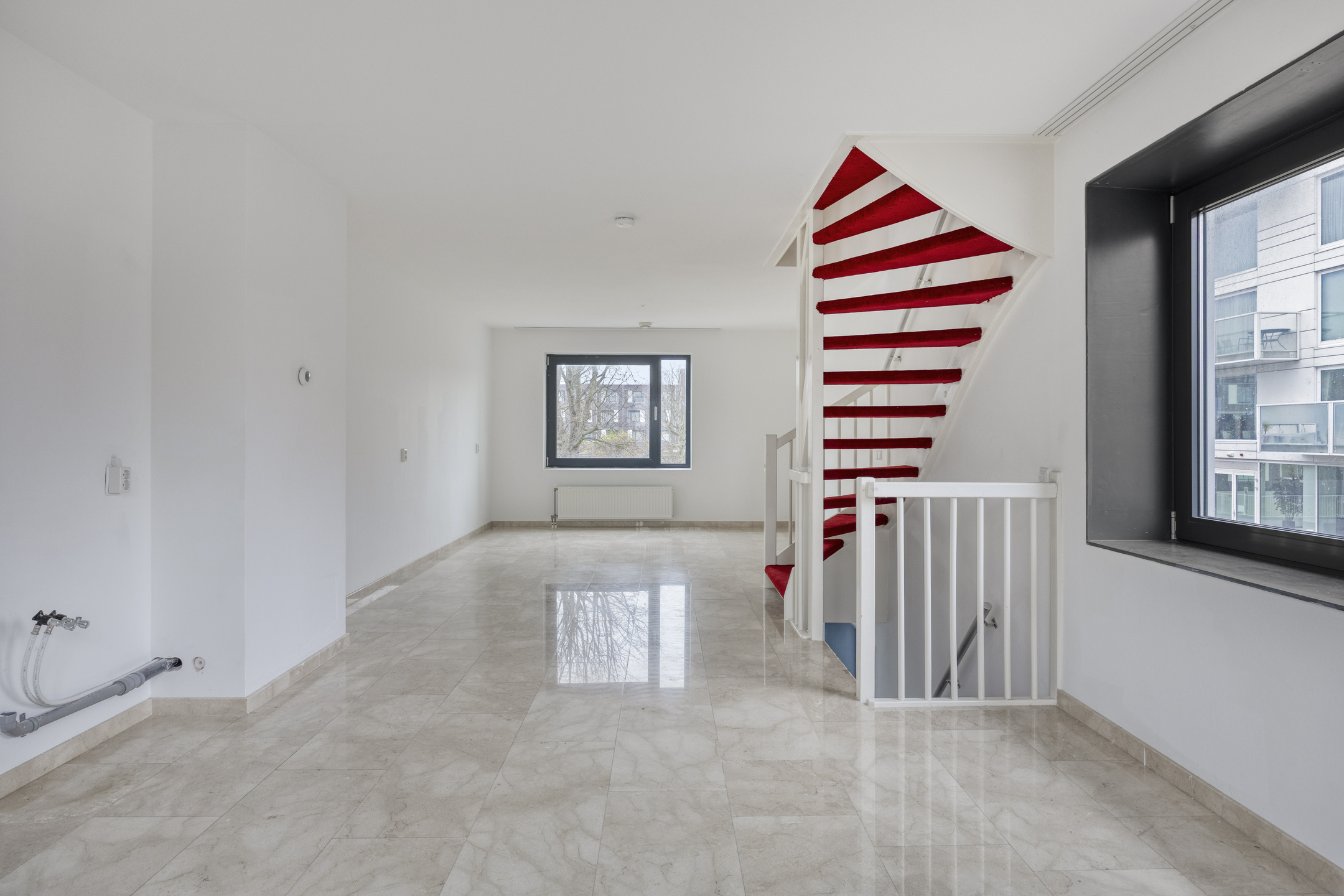 This floor features the spacious and bright living and dining room, finished with a modern tiled floor and benefiting from abundant natural light thanks to the corner position.