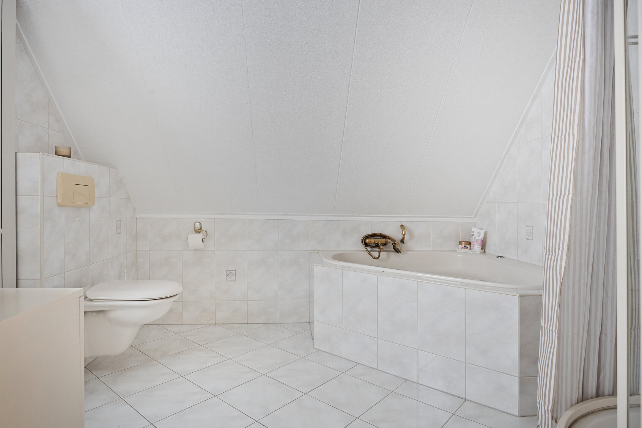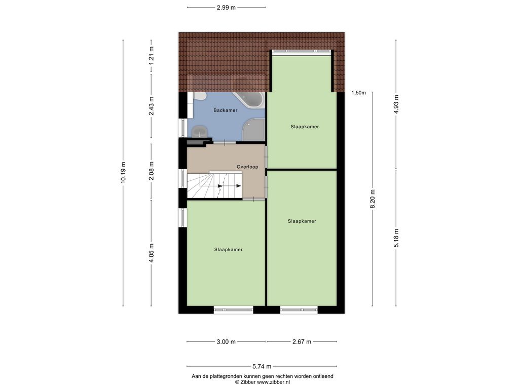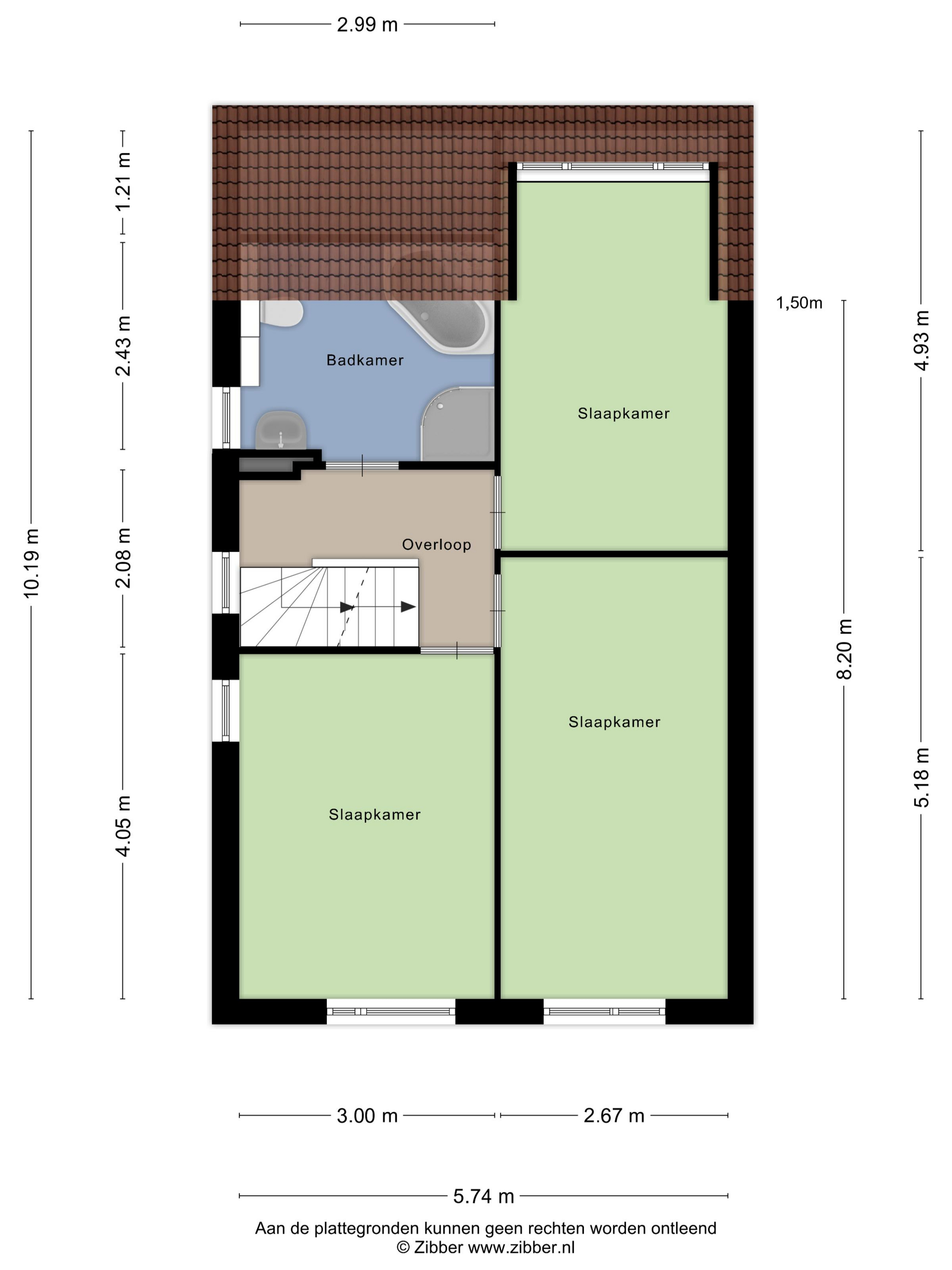 De trap in de hal leidt naar de overloop op de eerste verdieping, die toegang geeft tot drie ruime slaapkamers van respectievelijk 13 m², 13 m² en 12 m². Alle kamers zijn afgewerkt met een laminaatvloer en één van de slaapkamers beschikt over een dakkapel, wat zorgt voor extra ruimte en licht. Op deze verdieping bevindt zich ook de volledig betegelde badkamer, voorzien van een douche, ligbad en een tweede toilet.