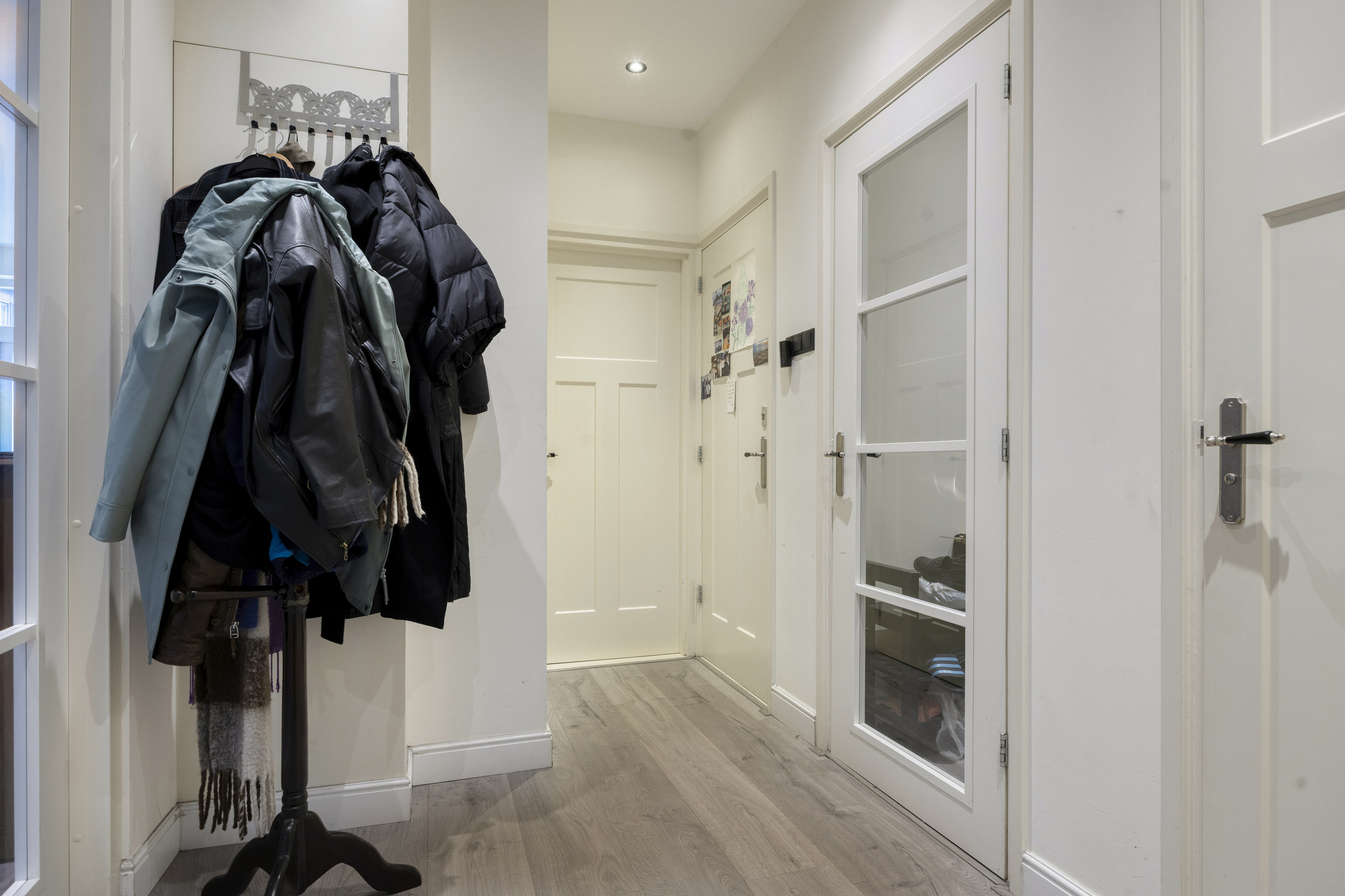 Bij binnenkomst via het tochtportaal tref je de centrale hal die toegang biedt tot de verschillende vertrekken. De indeling is overzichtelijk en functioneel, wat direct een prettig gevoel van ruimte en rust geeft.