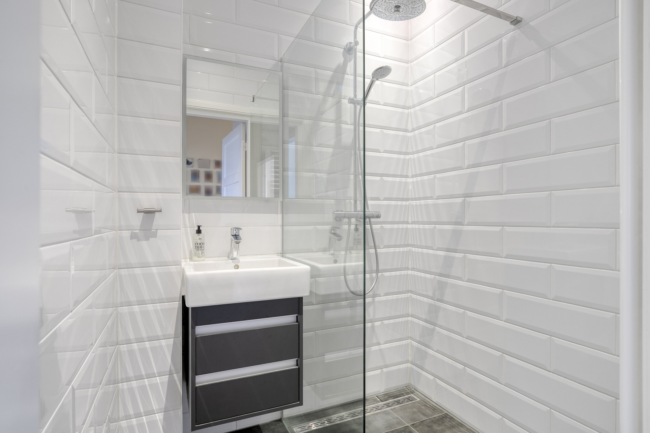 De volledig betegelde badkamer, vernieuwd in 2019, is voorzien van een douche en wastafel. Daarnaast is er in de woning een praktische opstelplaats voor de wasmachine en droger aanwezig.