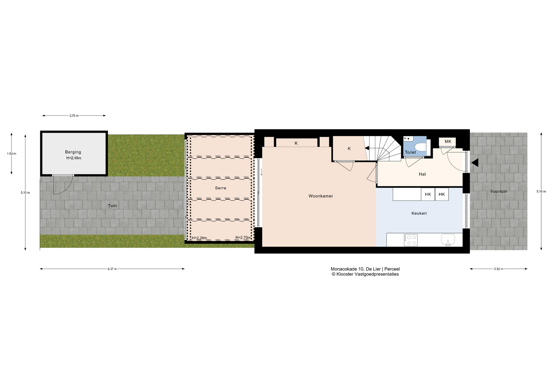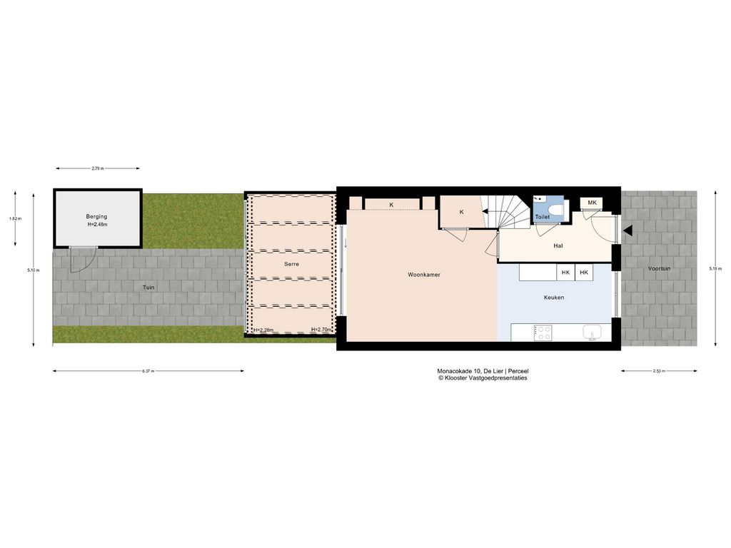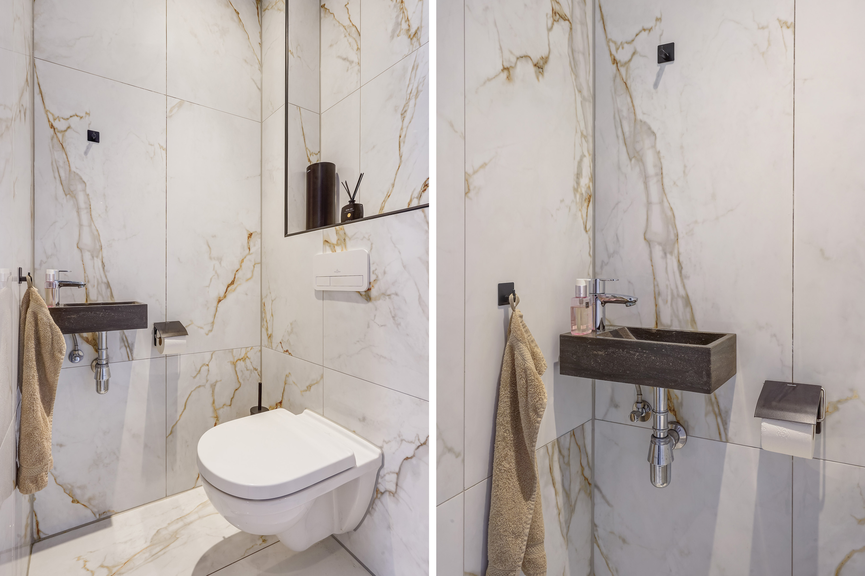 Via de voortuin betreed je de hal met modern toilet en trapopgang naar de eerste verdieping.