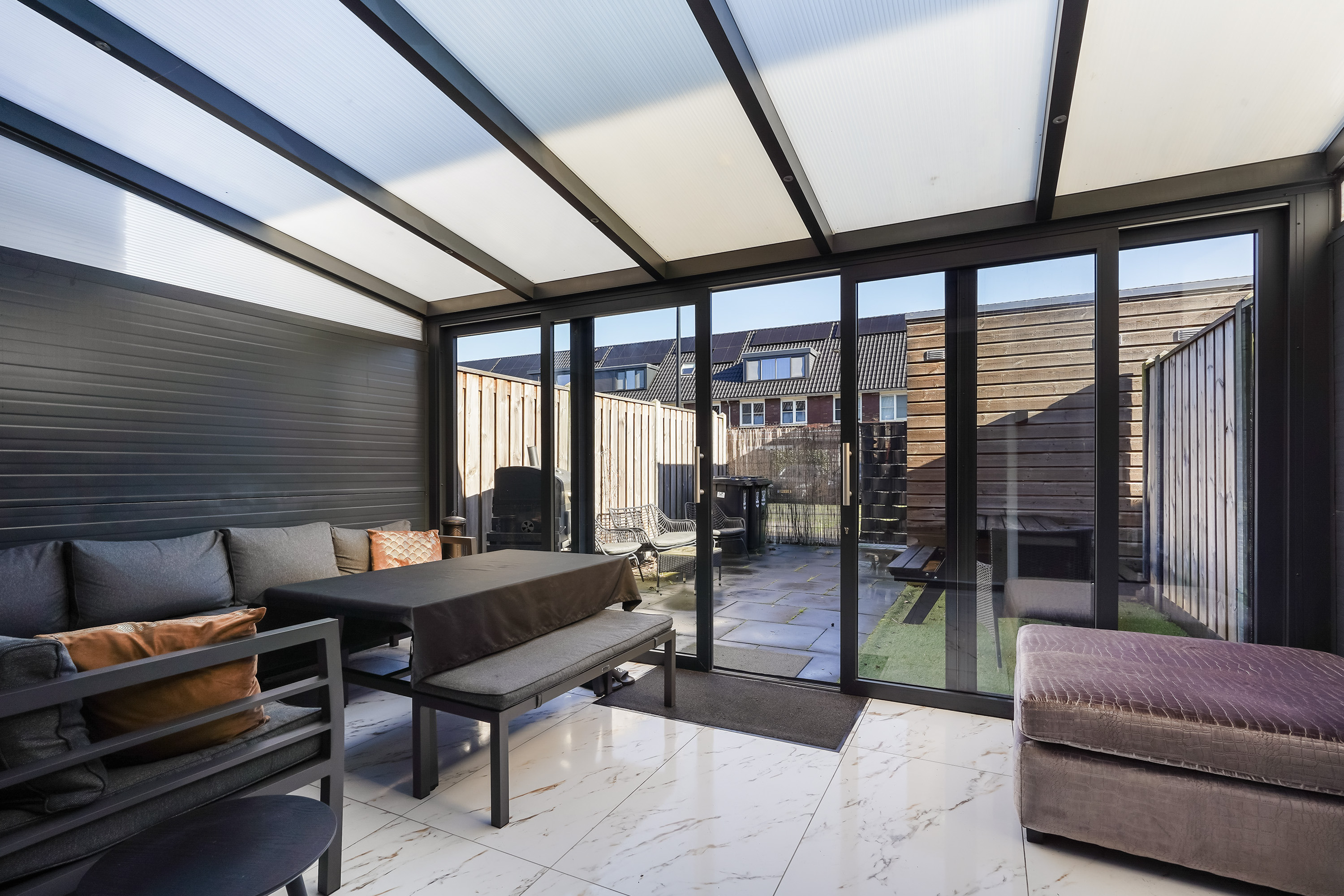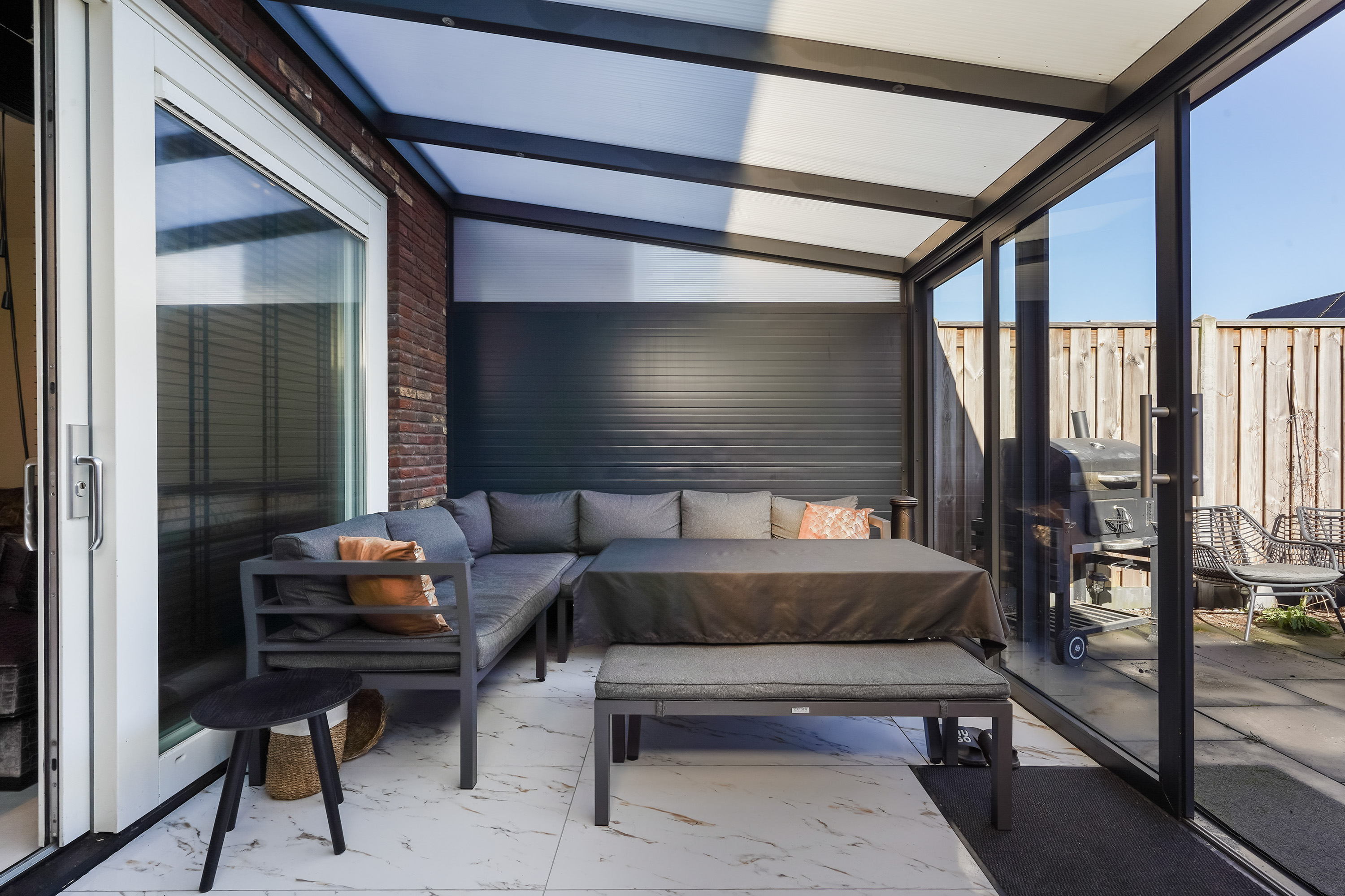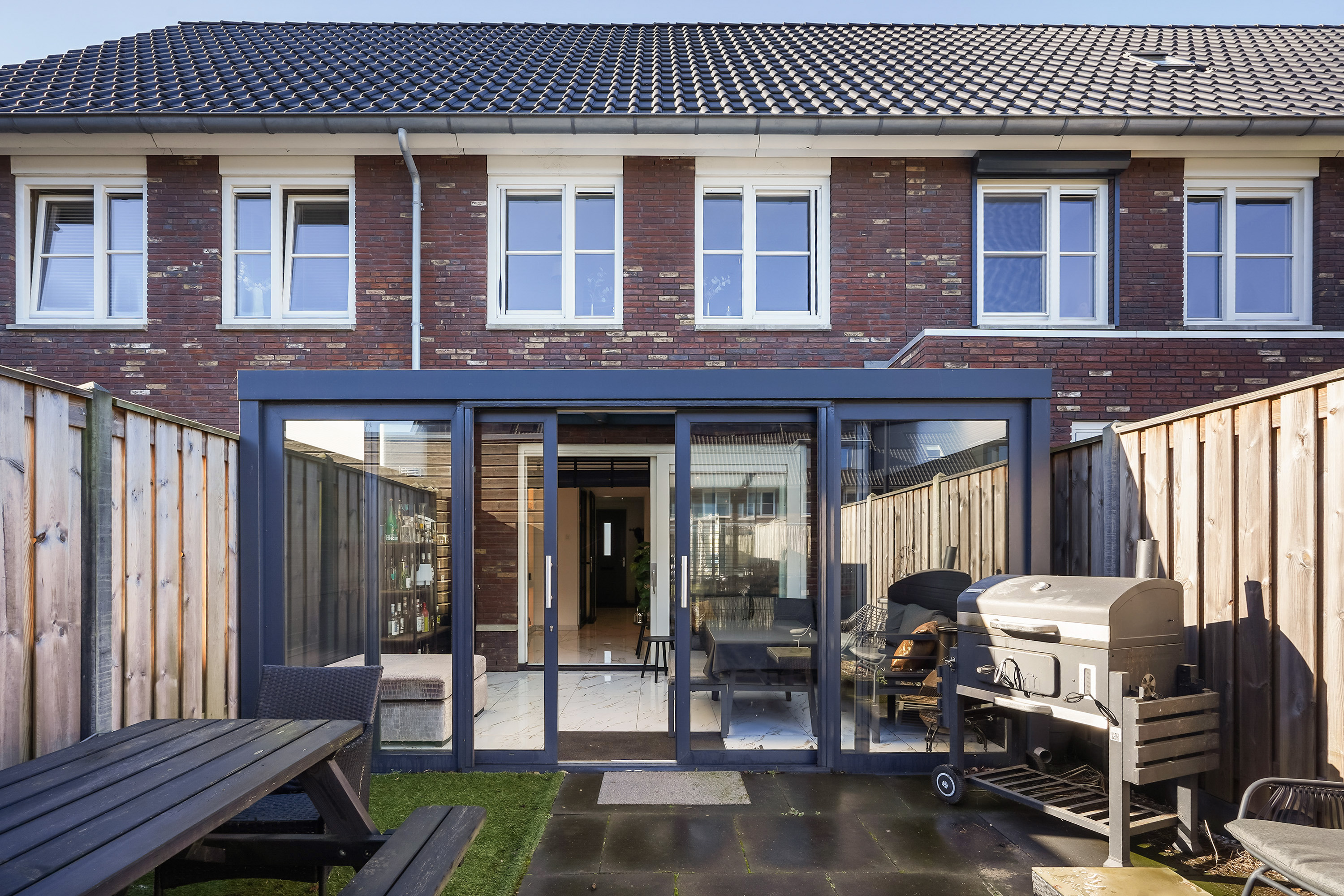Via de schuifpui bereik je de serre: een heerlijke extra leefruimte waar je het hele jaar door kunt genieten van het buitengevoel. Een verlengstuk van je woonkamer!