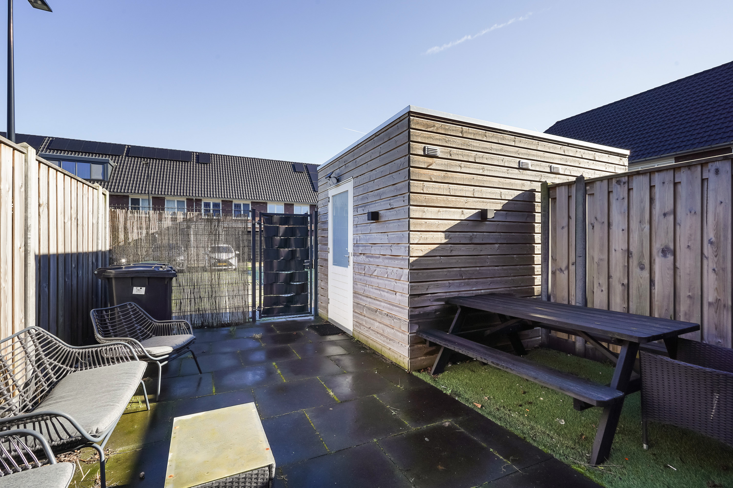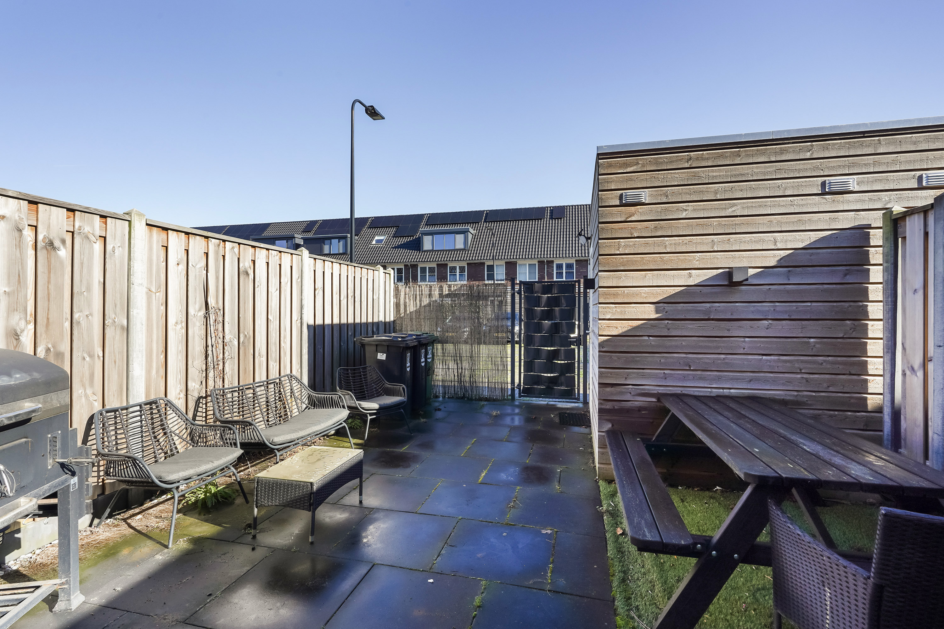 De tuin is gelegen op het noordoosten en biedt een fijne plek om in alle rust te genieten.