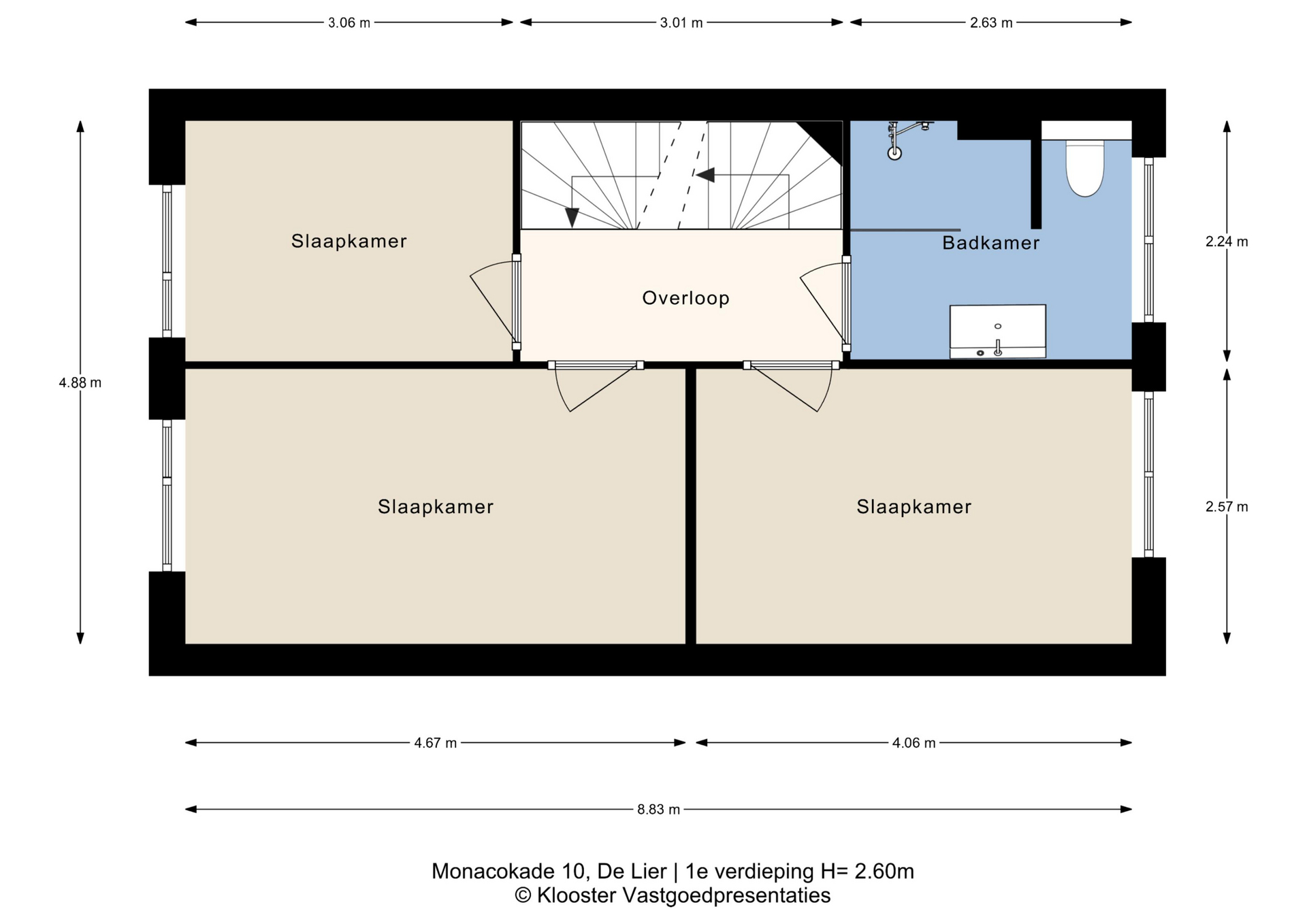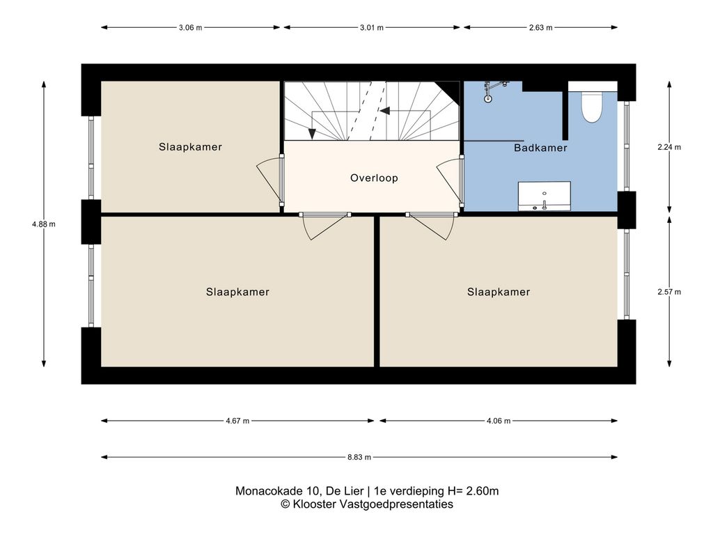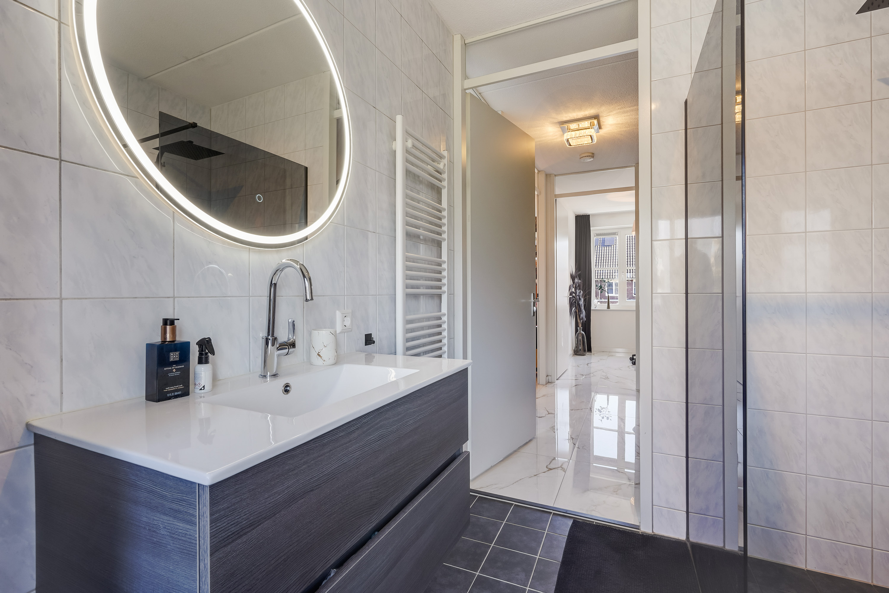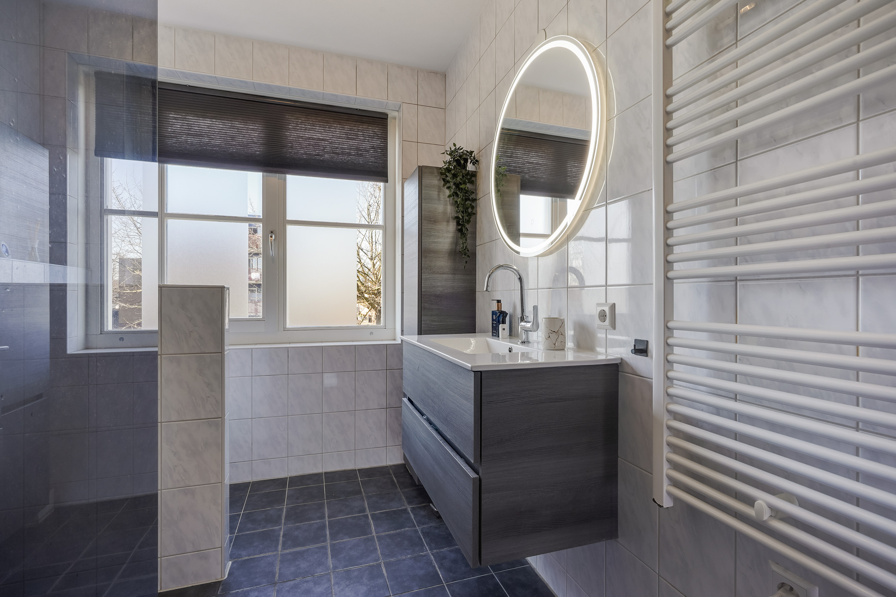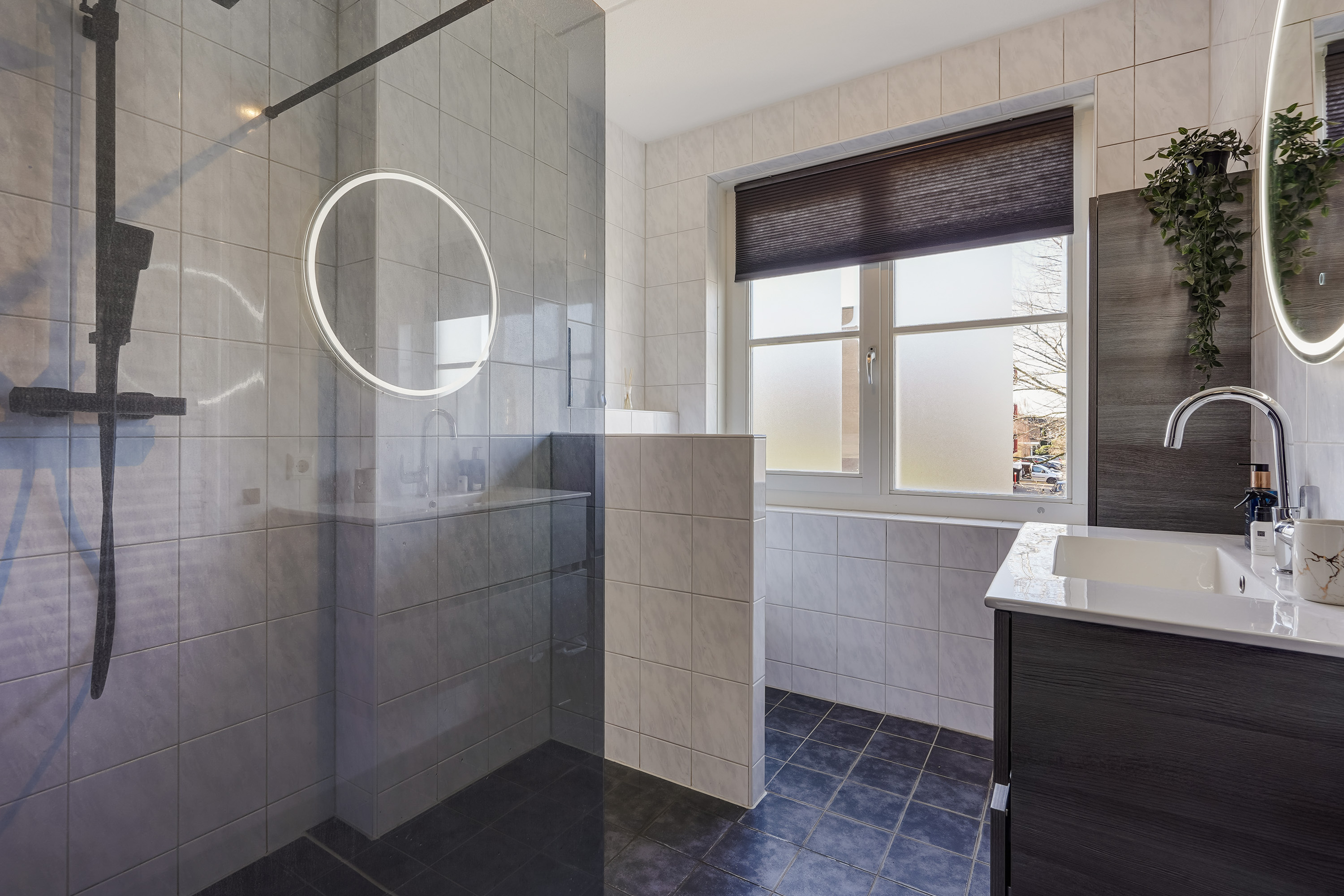 Op de eerste verdieping bevinden zich drie ruime slaapkamers. De moderne badkamer is compleet uitgevoerd met een inloopdouche, wastafelmeubel en tweede toilet.