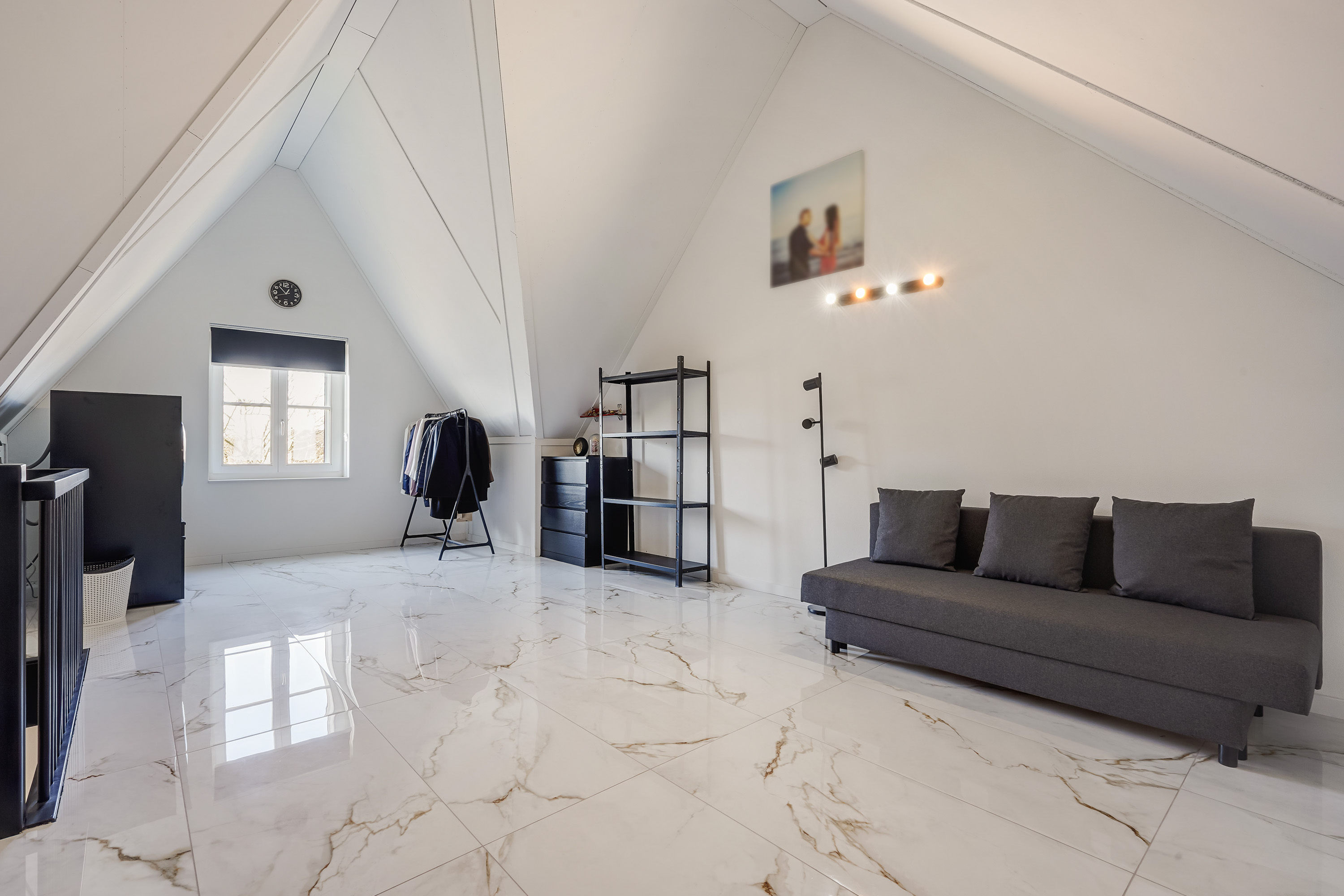 Via een vaste trap bereik je de royale zolderverdieping. Deze grote open ruimte is nog volledig vrij indeelbaar, ideaal als extra slaapkamer, werkruimte, hobbykamer of sportruimte.