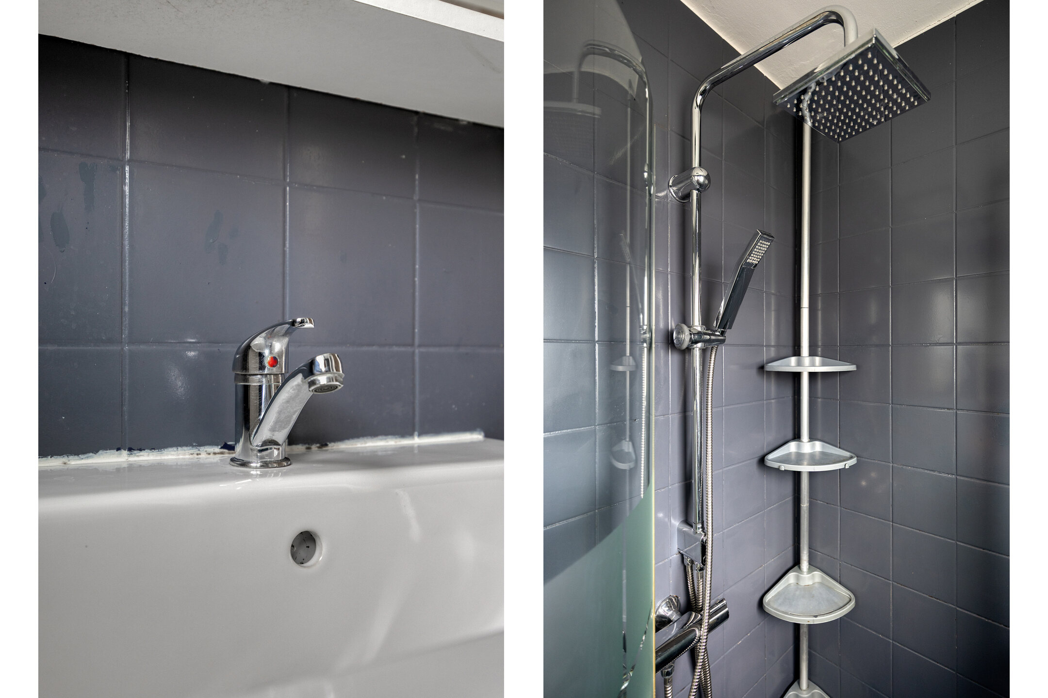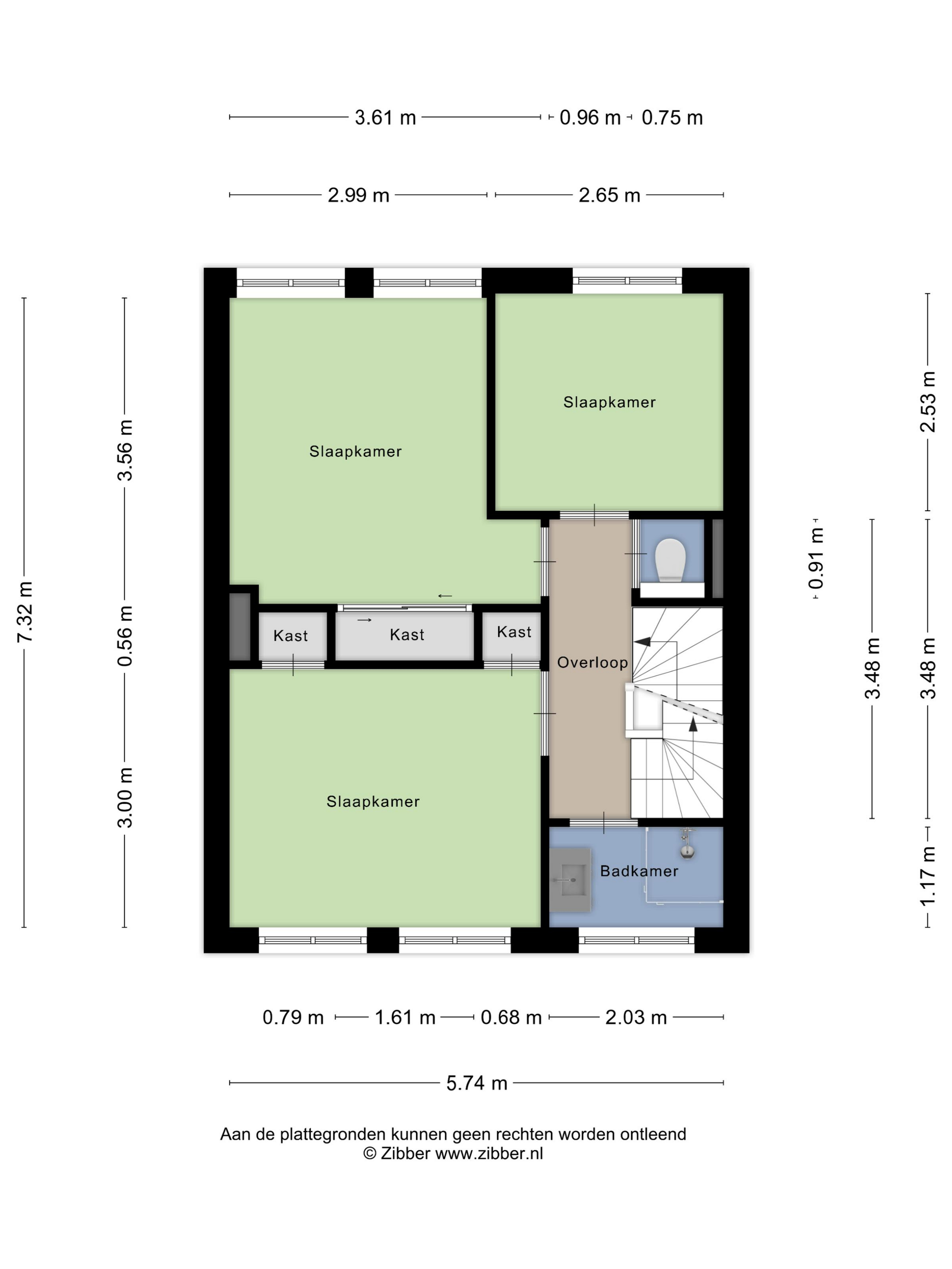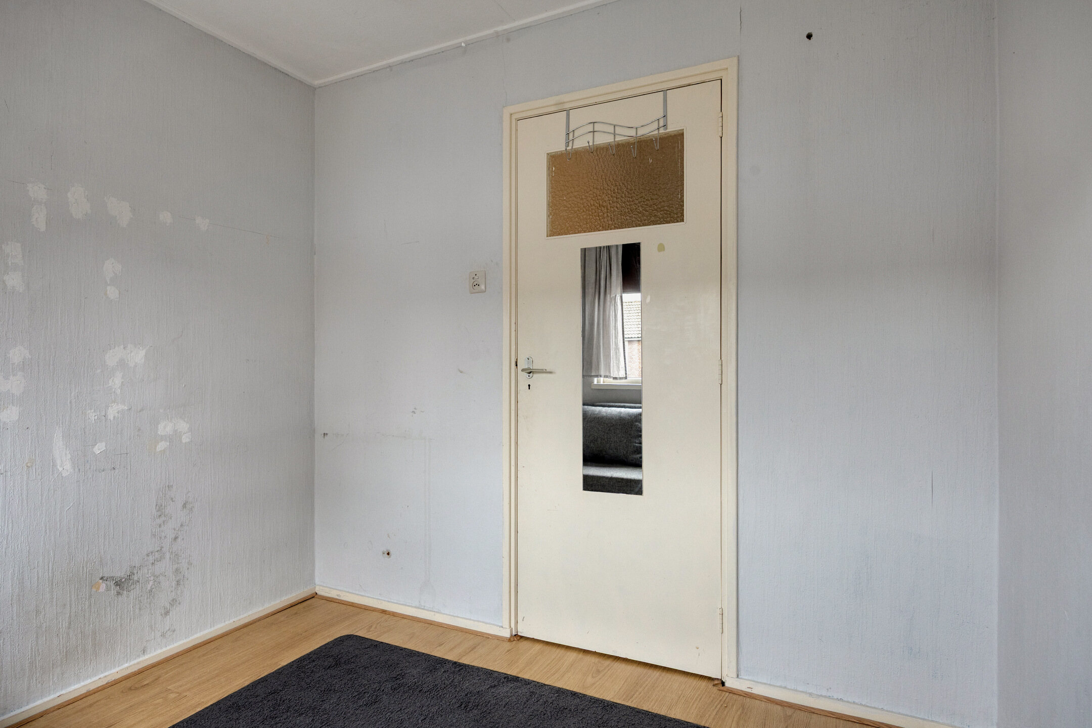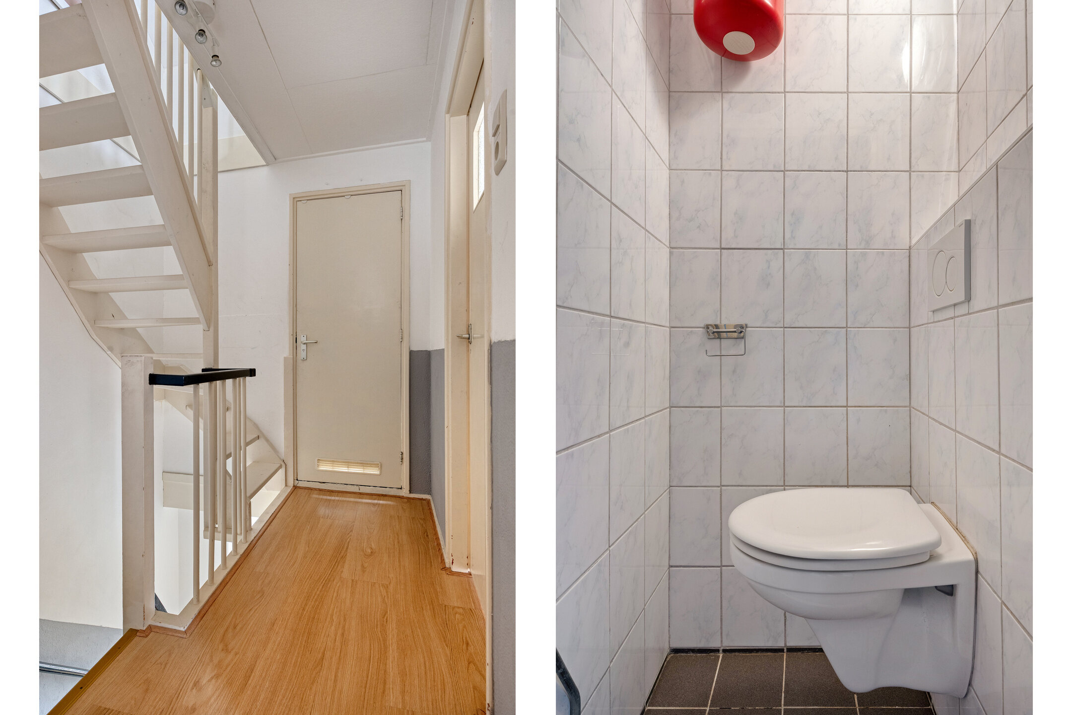 De trapopgang leidt naar de eerste verdieping, waar de overloop toegang biedt tot drie slaapkamers van respectievelijk 10 m², 10 m² en 6 m². Alle slaapkamers zijn afgewerkt met een laminaatvloer. Op deze verdieping bevindt zich daarnaast een separaat tweede toilet, dat volledig is betegeld. De badkamer is eveneens geheel betegeld en voorzien van een inloopdouche en wastafel.