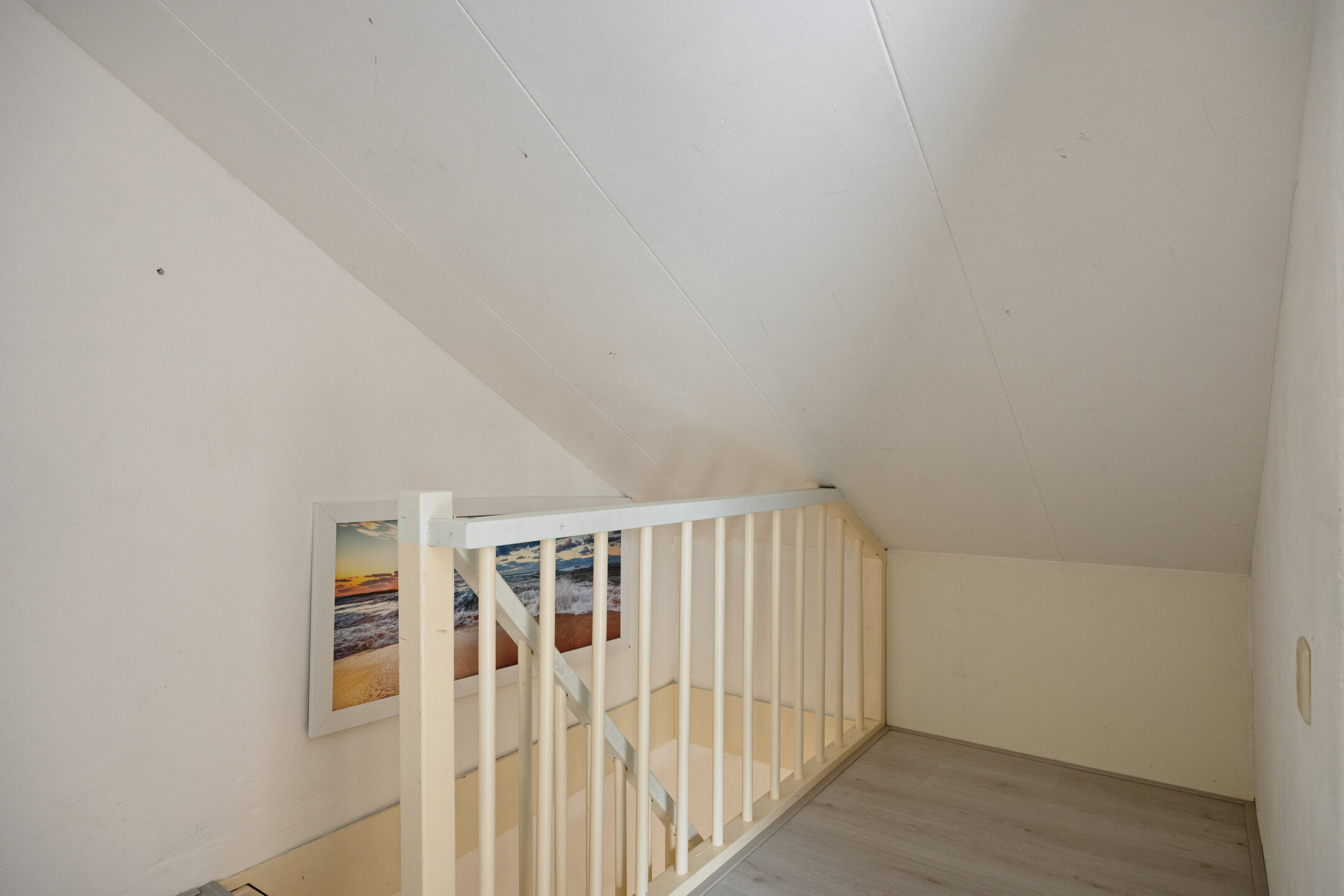 De trap loopt door naar de tweede verdieping, waar zich nog een ruime slaapkamer van respectievelijk 11 m² bevindt. Aan de voorzijde van deze verdieping ligt een royale overloop, die naar wens kan worden ingericht als bergruimte of werkplek.