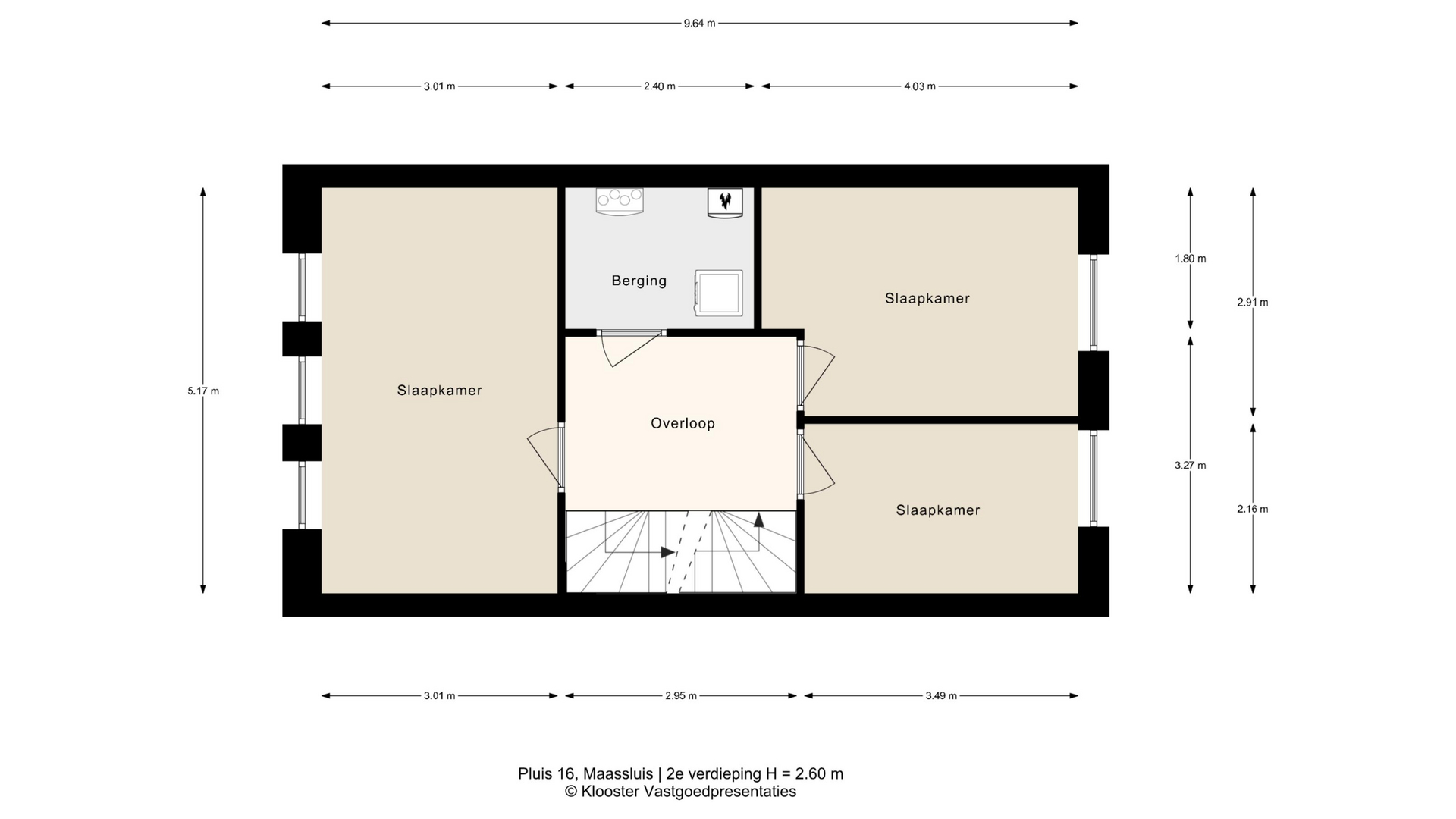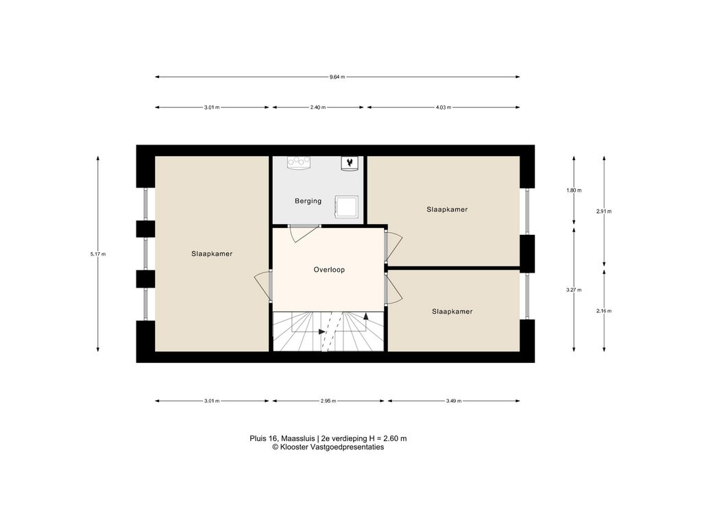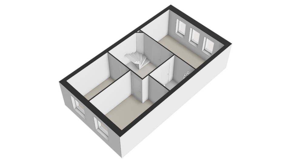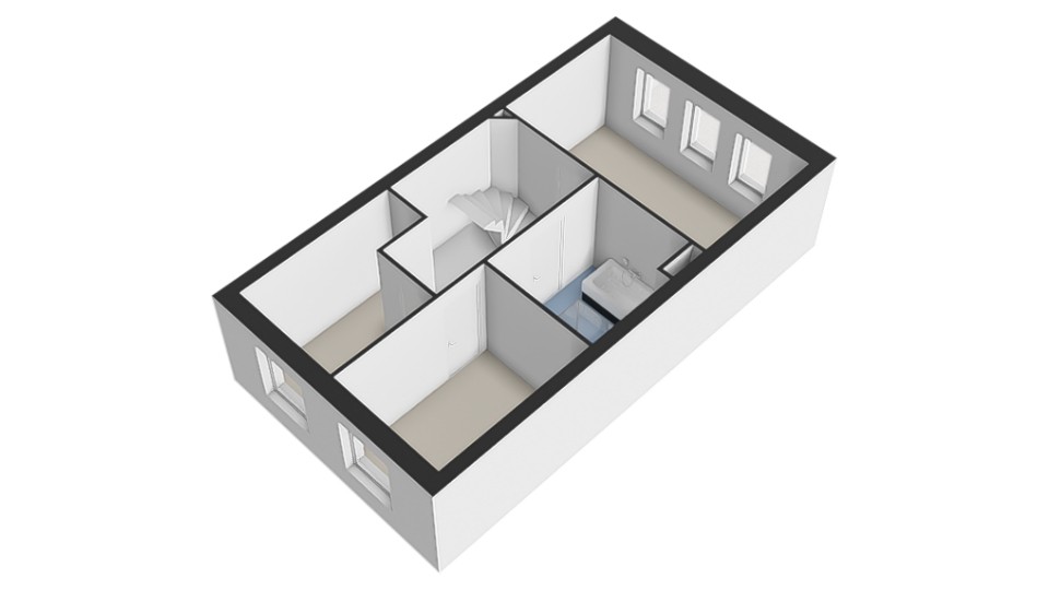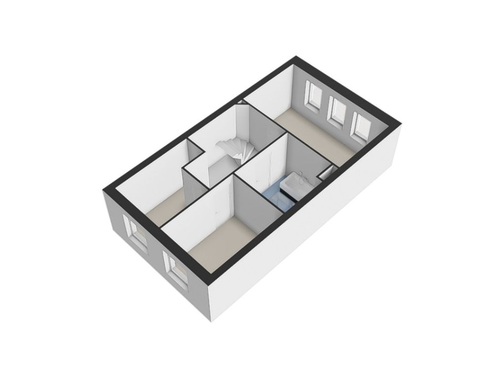 De tweede verdieping telt nog eens drie grote slaapkamers en een technische ruimte waar de warmtepomp en wasmachineopstelling zijn ondergebracht.