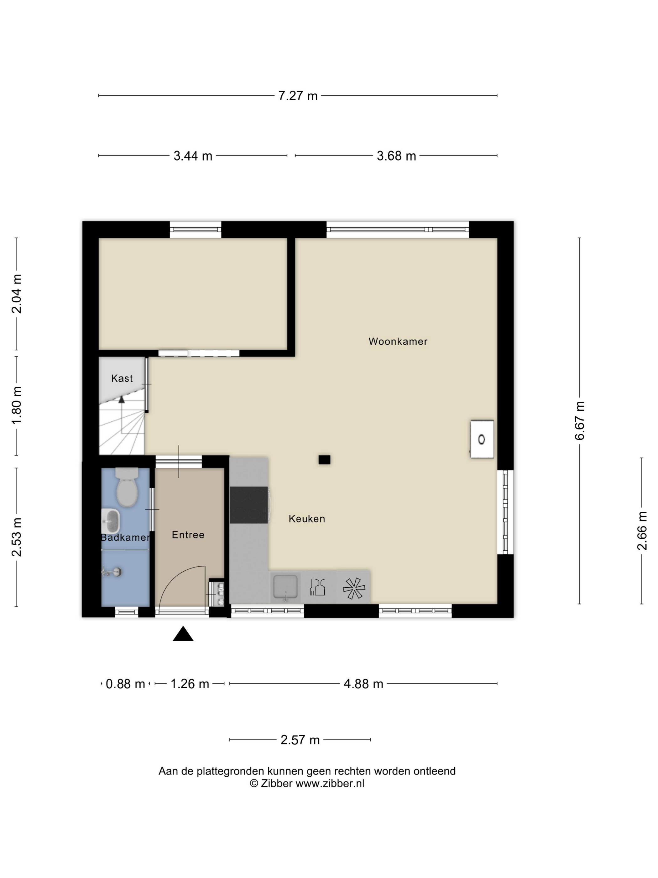 Via de entree kom je binnen in de hal met toegang tot de badkamer en de leefruimtes.