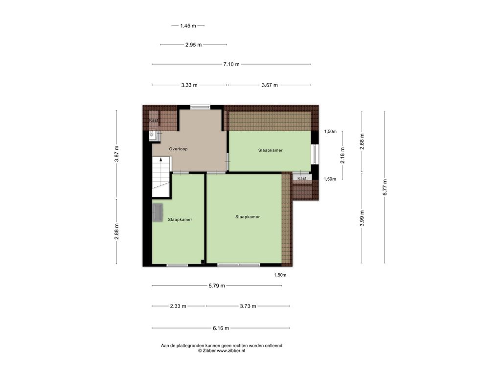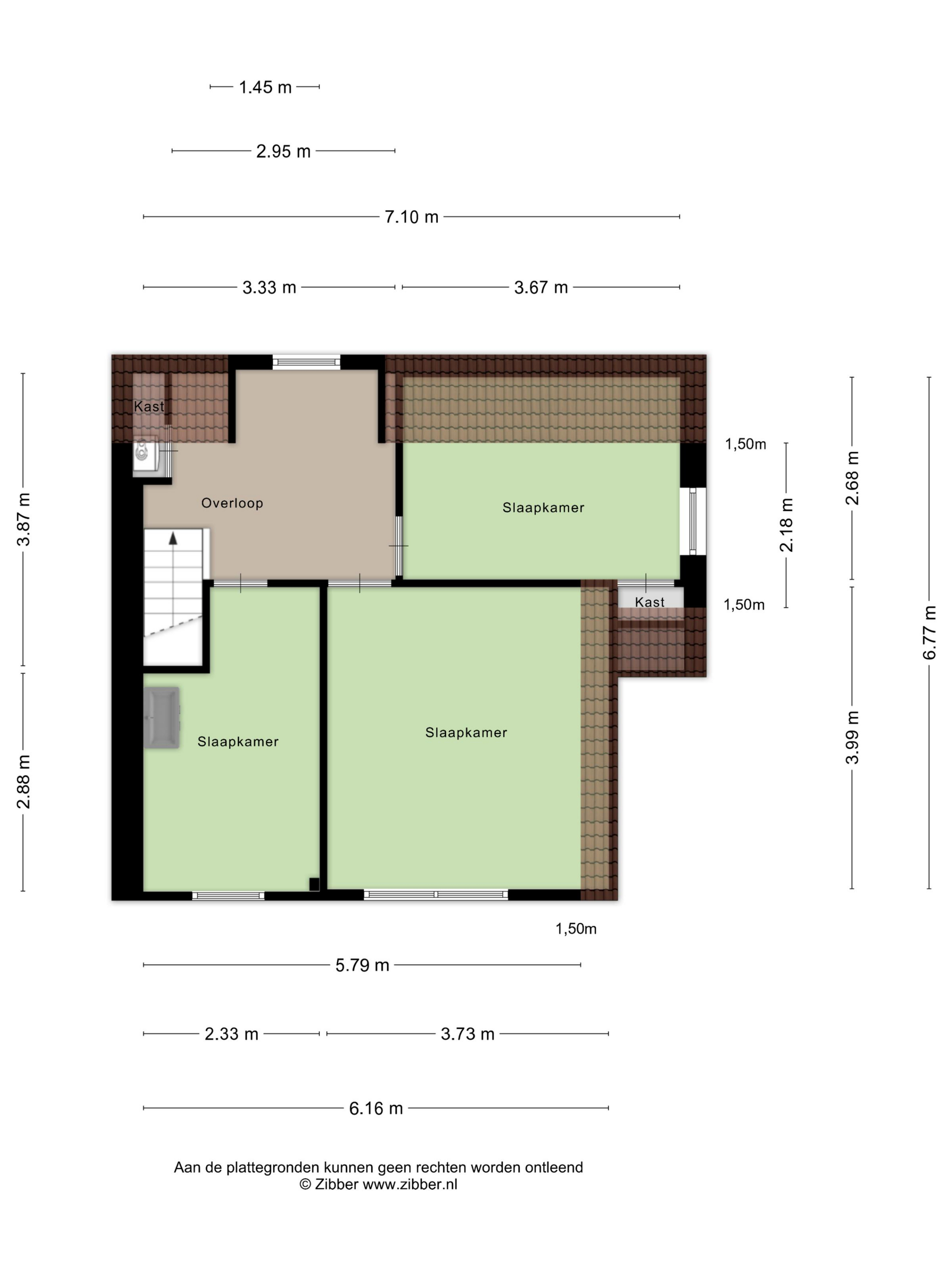 Op de verdieping bevinden zich drie slaapkamers.