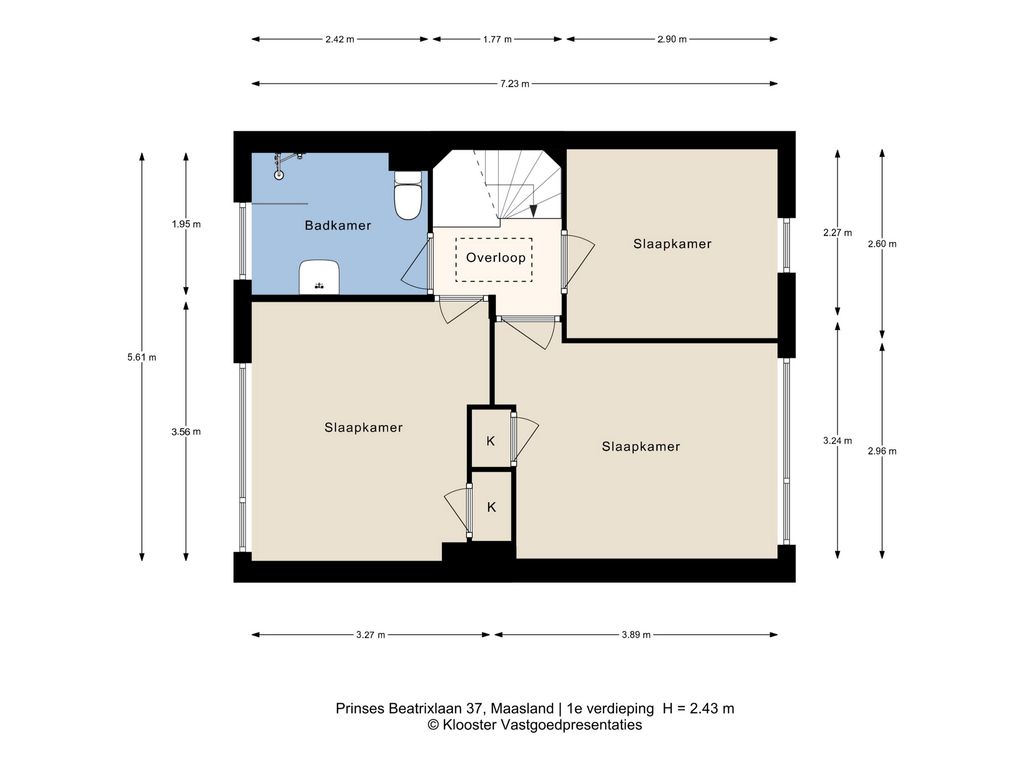- Overige inpandige ruimte (vliering): 8,10 m²