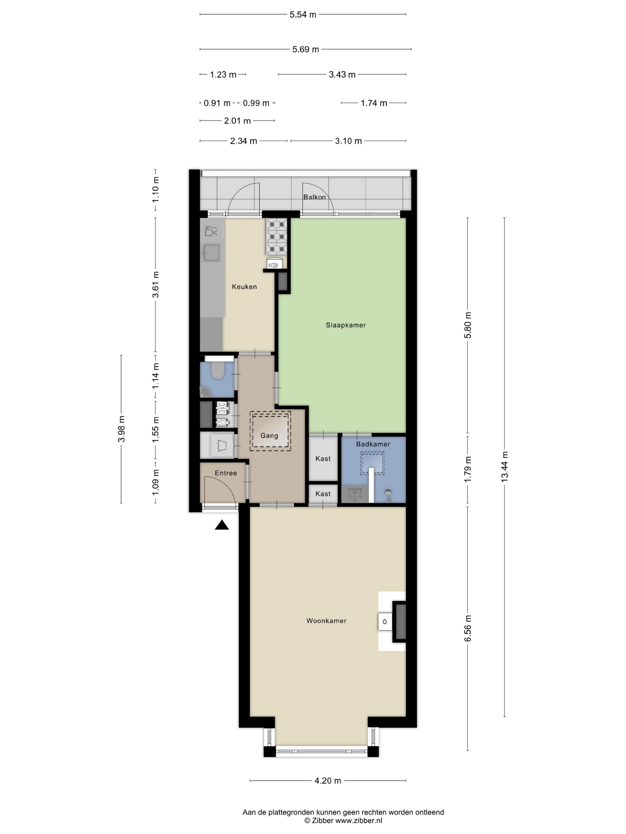 Via de ruime entree komt u in de woning en betreedt u de gang die de verschillende vertrekken met elkaar verbindt. Vanuit deze gang heeft u toegang tot het half betegelde toilet met fonteintje, de aparte wasruimte en de meterkast. De indeling is praktisch en overzichtelijk, met een prettige scheiding tussen de woon- en slaapvertrekken.