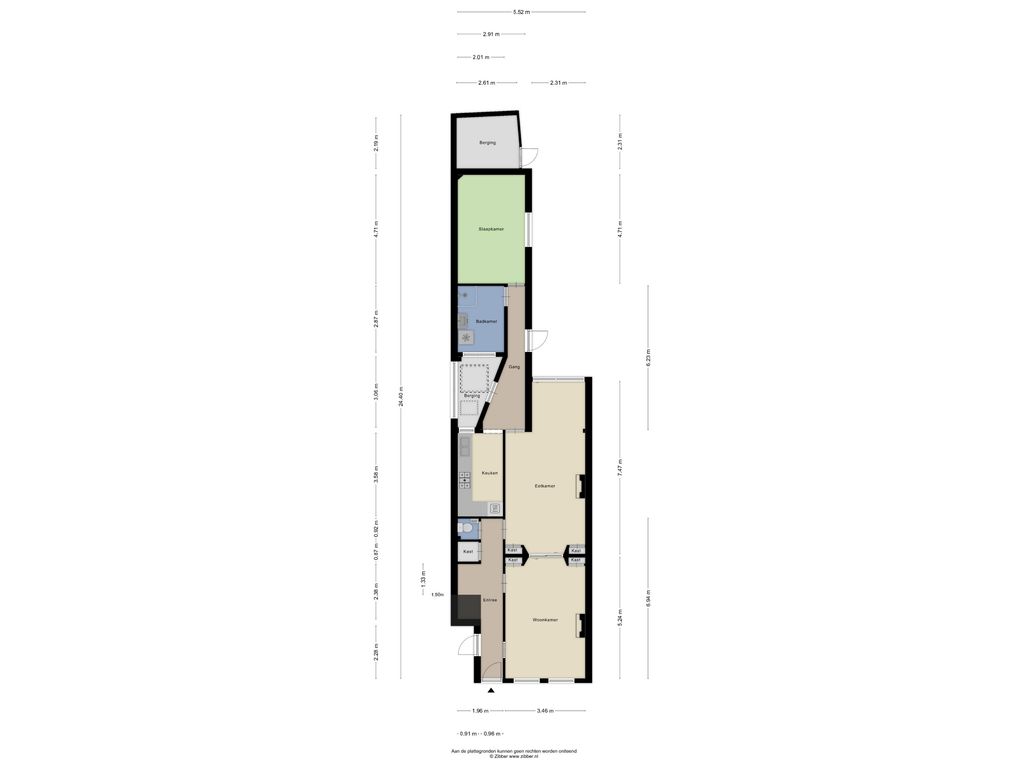 Bovenstaande informatie is door ons met de hoogst nodige zorgvuldigheid samengesteld. Door ons wordt echter geen enkele aansprakelijkheid aanvaard voor enige onvolledigheid, onjuistheid of anderszins, dan wel de gevolgen daarvan. Alle opgegeven maten en oppervlakten zijn indicatief. De woning is gemeten met gebruikmaking van de Meetinstructie, die is gebaseerd op de normen zoals vastgelegd in NEN 2580. De Meetinstructie is bedoeld om een meer eenduidige manier van meten toe te passen voor het geven van een indicatie van gebruiksoppervlakte. De Meetinstructie sluit verschillen in meetuitkomsten niet volledig uit, door bijvoorbeeld interpretatieverschillen, afrondingen of beperkingen bij het uitvoeren van de meting. Hoewel wij de woning zorgvuldig hebben opgemeten, wordt noch door ons kantoor, noch door de verkoper enige aansprakelijkheid aanvaard voor afwijkingen in de opgegeven maten. Koper wordt in de gelegenheid gesteld om de opgegeven maten te (laten) controleren.