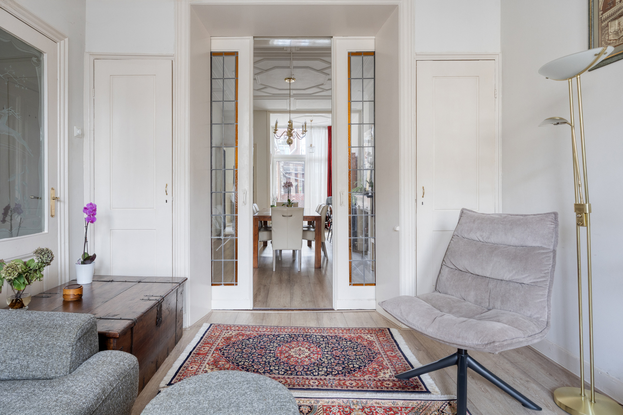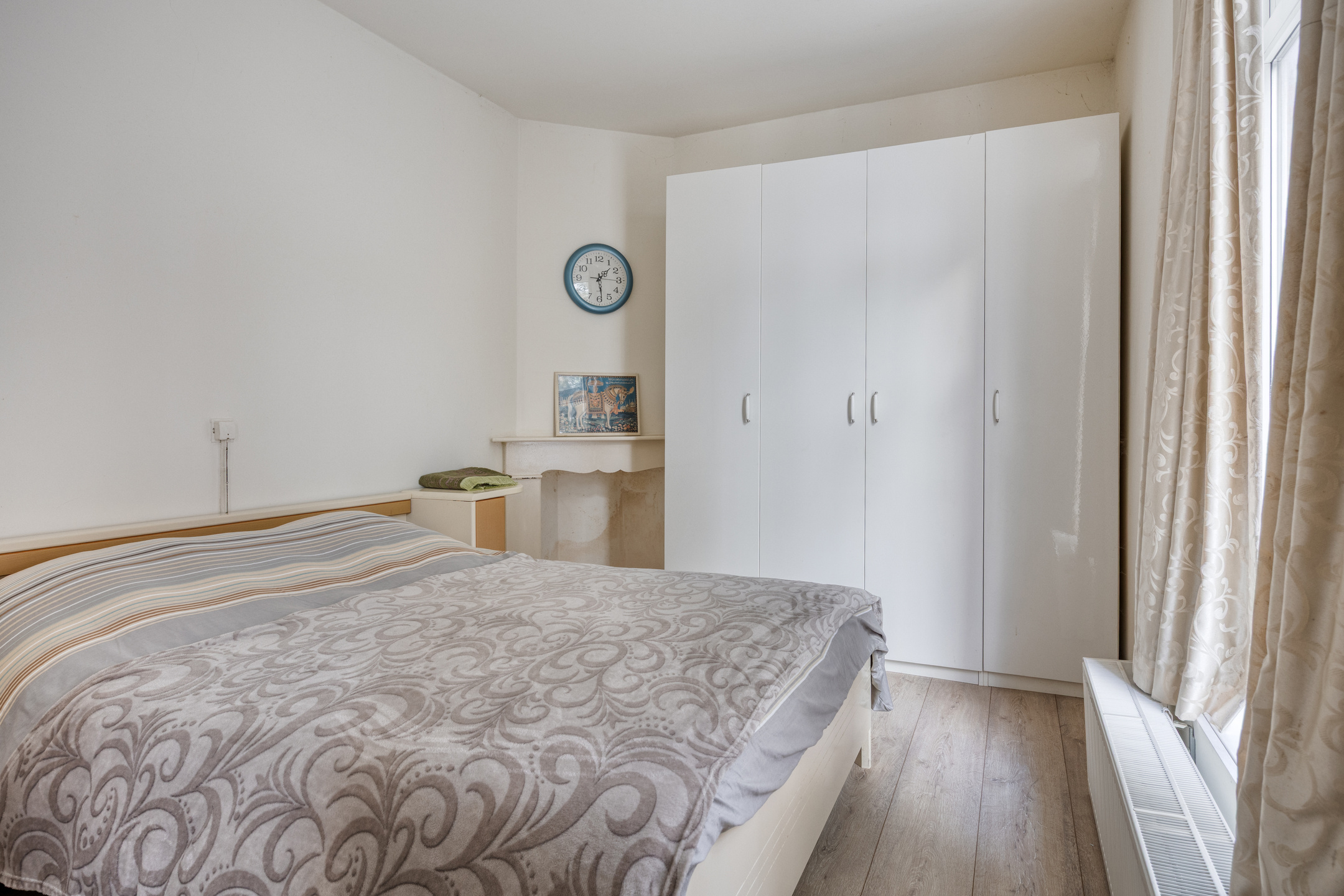 Vanuit de gang kom je binnen in de royale woon- en eetkamer en-suite, waar hoge plafonds en sierlijke ornamenten direct een ruim gevoel geven. Vanuit de eetkamer loop je door naar de achtergang, waar zich de keuken bevindt. Deze is uitgerust met diverse inbouwapparatuur, waaronder een 5-pits gasfornuis, oven en magnetron van Bosch, een afzuigkap en een vaatwasser. Wanneer je verder door de achtergang loopt, passeer je eerst een charmante overdekte binnenplaats. Wanneer je verder door deze gang loopt, kom je bij de ruime badkamer, uitgerust met een comfortabele douchehoek, een wastafel en een stijlvol wastafelmeubel. Direct aansluitend heb je de royale slaapkamer, die rustig gelegen is aan de achterzijde van de woning. Vanuit de achtergang heb je tevens toegang tot de zonnige tuin van circa 25 m², waar je heerlijk kunt ontspannen. Achter in de tuin bevindt zich een praktische berging, ideaal voor extra opslagruimte.