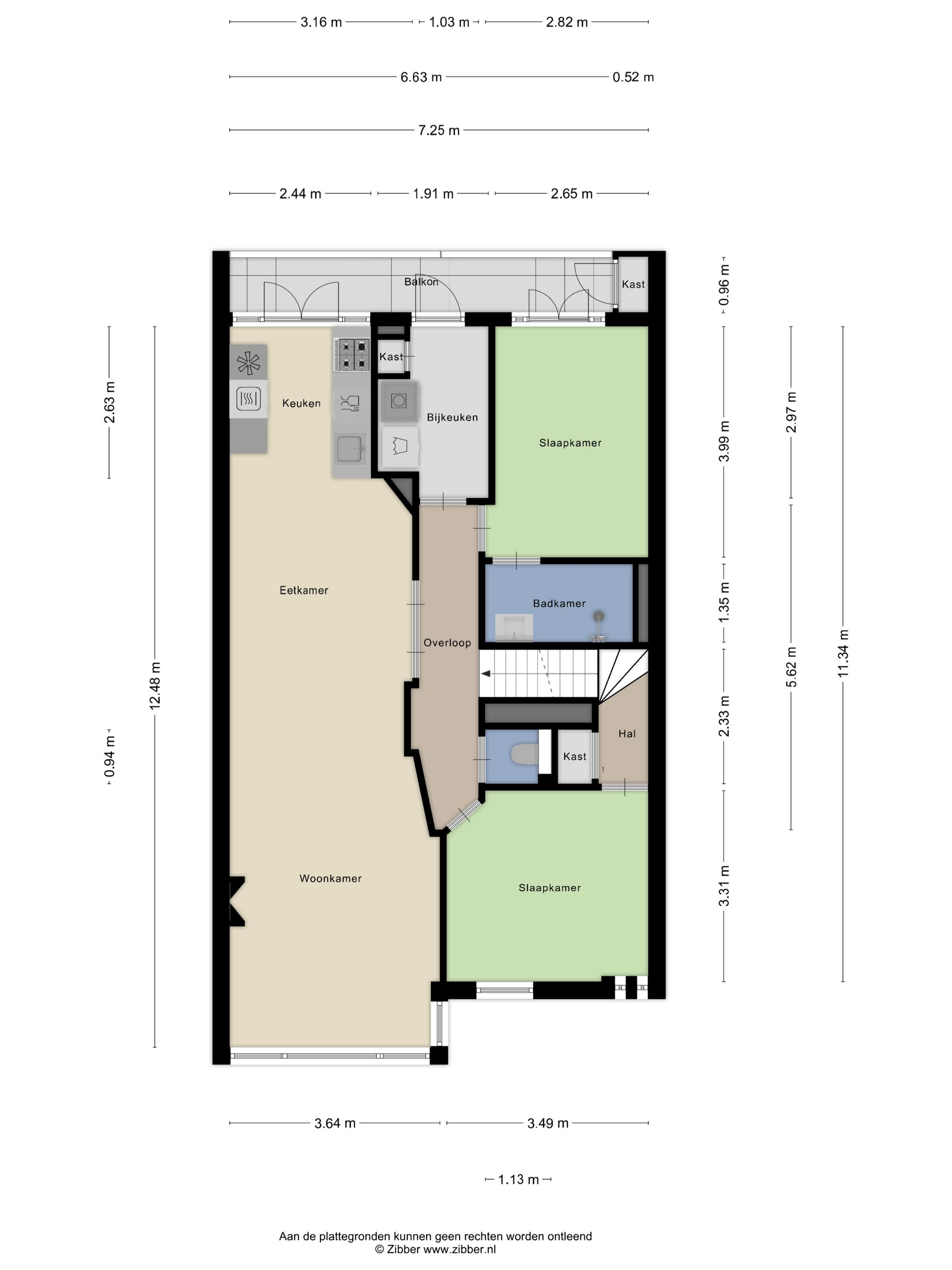 Via de voordeur bereikt u via een trap de eerste verdieping, waar een centrale overloop de diverse vertrekken met elkaar verbindt. Over de gehele lengte van de woning bevindt zich de lichte woonkamer, die doorloopt in de open keuken. Deze keuken, geplaatst in 2014, is voorzien van een koel- vriescombinatie, combimagnetron, vaatwasser, heetwaterkraan, afzuigkap en een vierpits gaskookplaat. De gehele verdieping is keurig afgewerkt met een laminaatvloer. Aan de achterzijde ligt een ruime slaapkamer van circa tien vierkante meter, met ensuite een badkamer voorzien van een inloopdouche en wastafel. Direct naast deze slaapkamer bevindt zich de bijkeuken met opstelplaats voor de wasmachine en droger. Separaat is er op deze verdieping nog een toilet aanwezig. Aan de achterzijde van de woning ligt bovendien een ruim balkon over de volle breedte, waar u heerlijk kunt genieten van de buitenlucht.