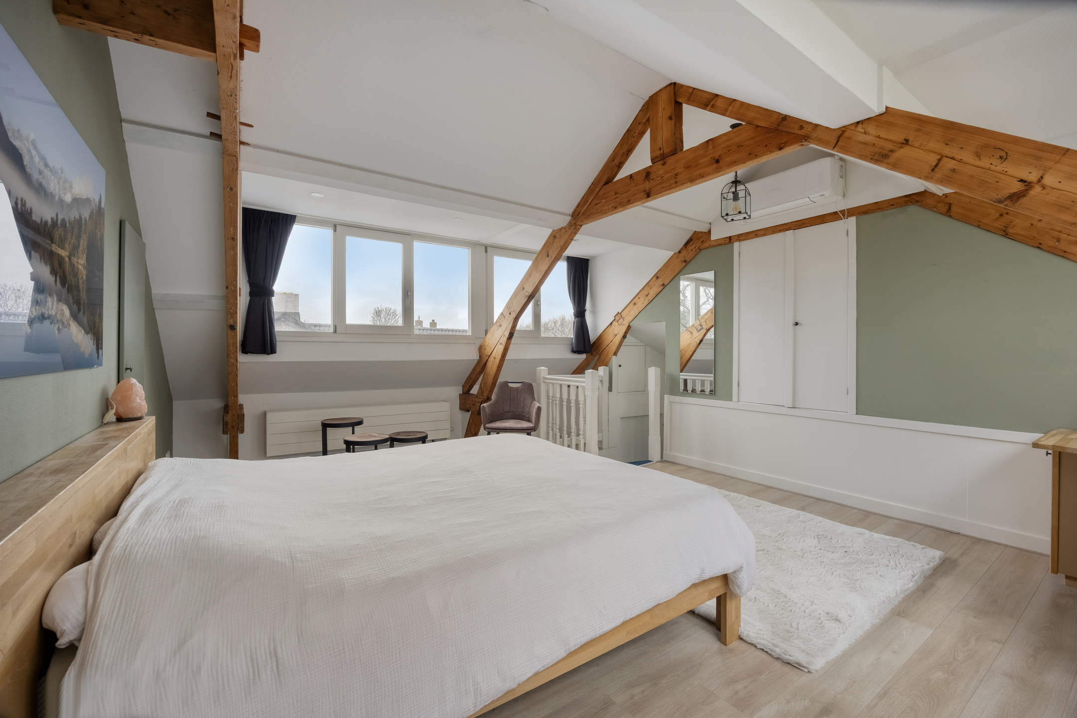 De tweede verdieping is ingericht als royale master bedroom met dubbele dakkapel, airconditioning en een prachtig uitzicht. Daarnaast beschikt deze verdieping over een walk-in closet en veel bergruimte.