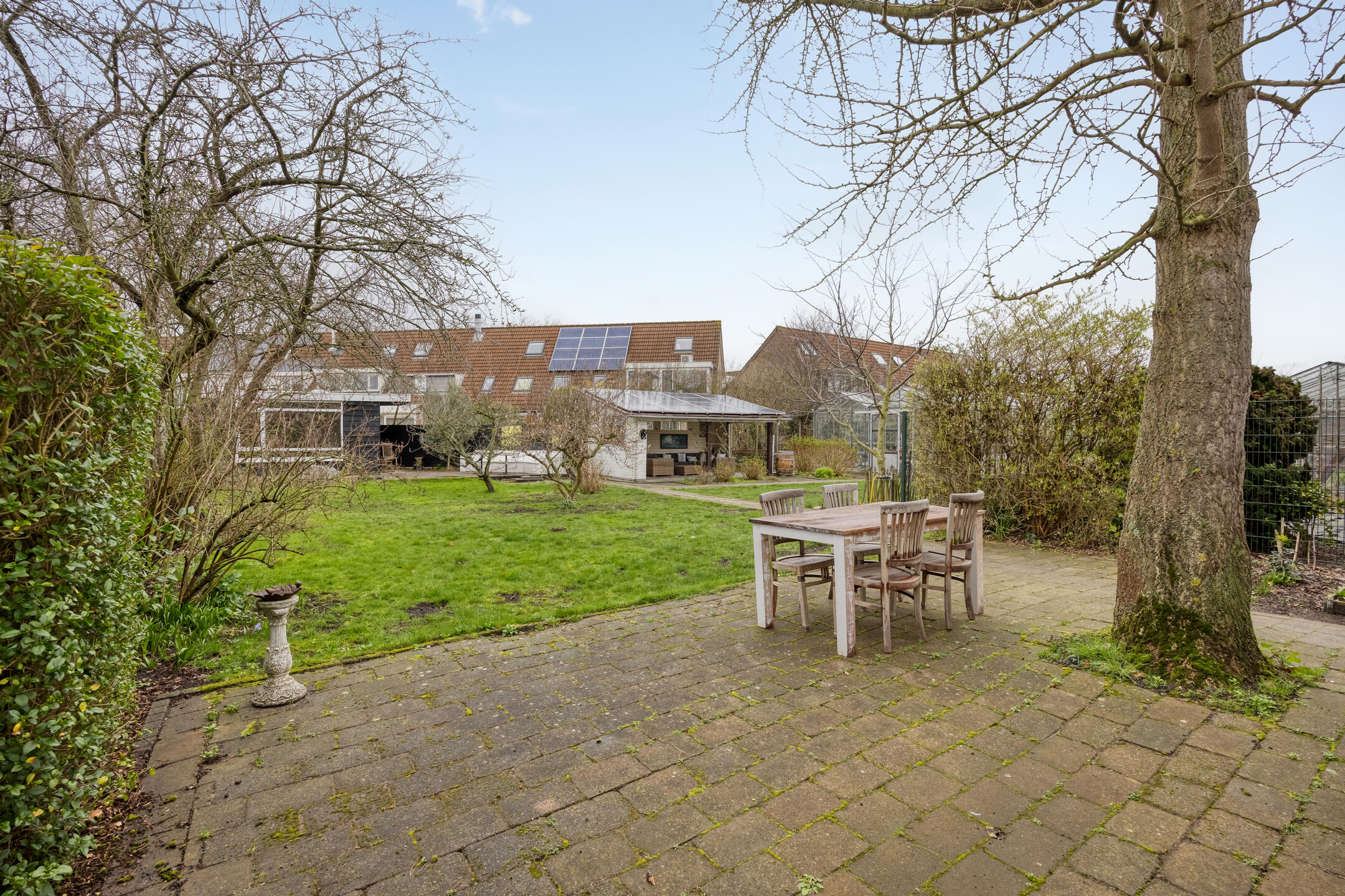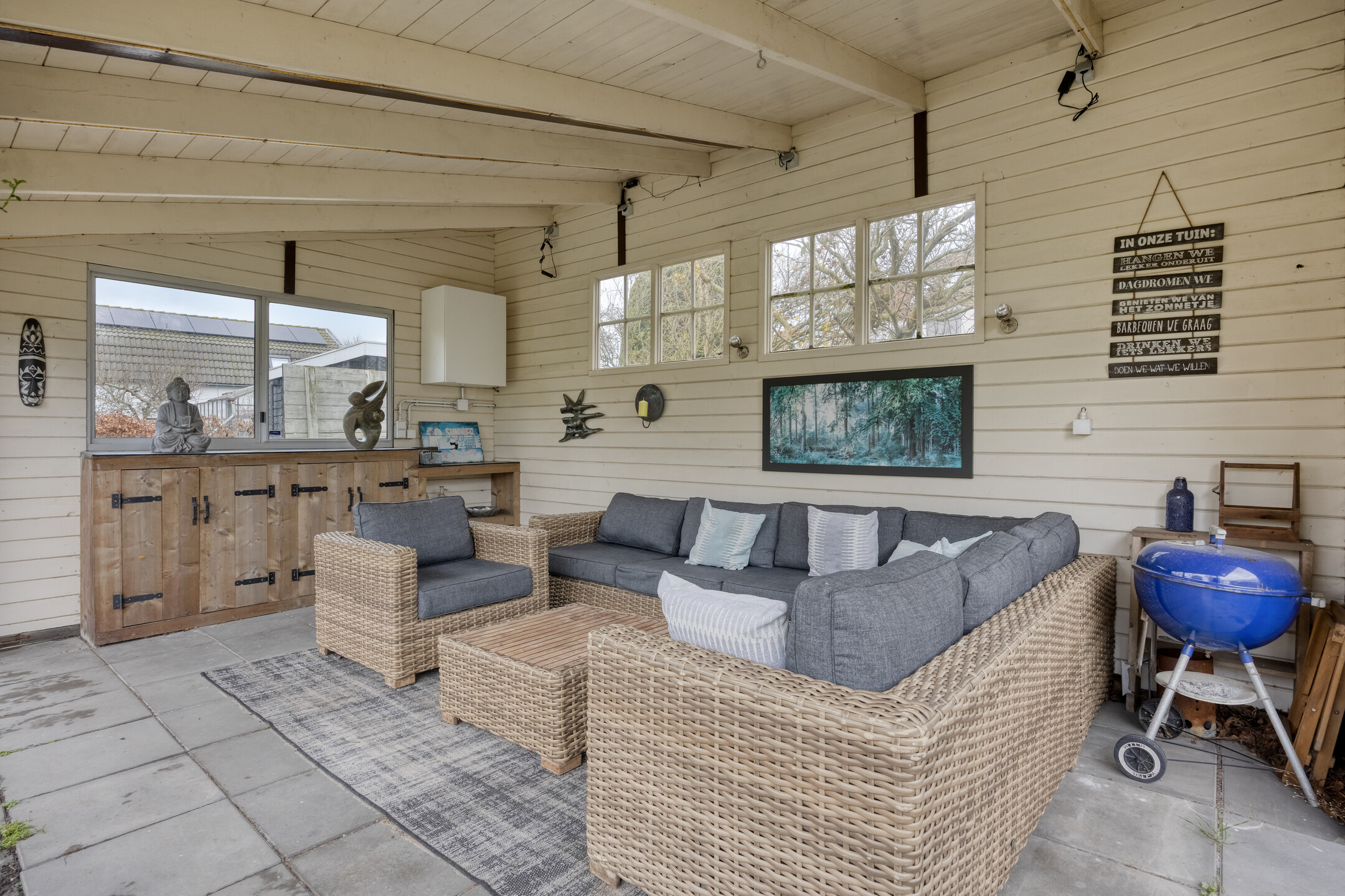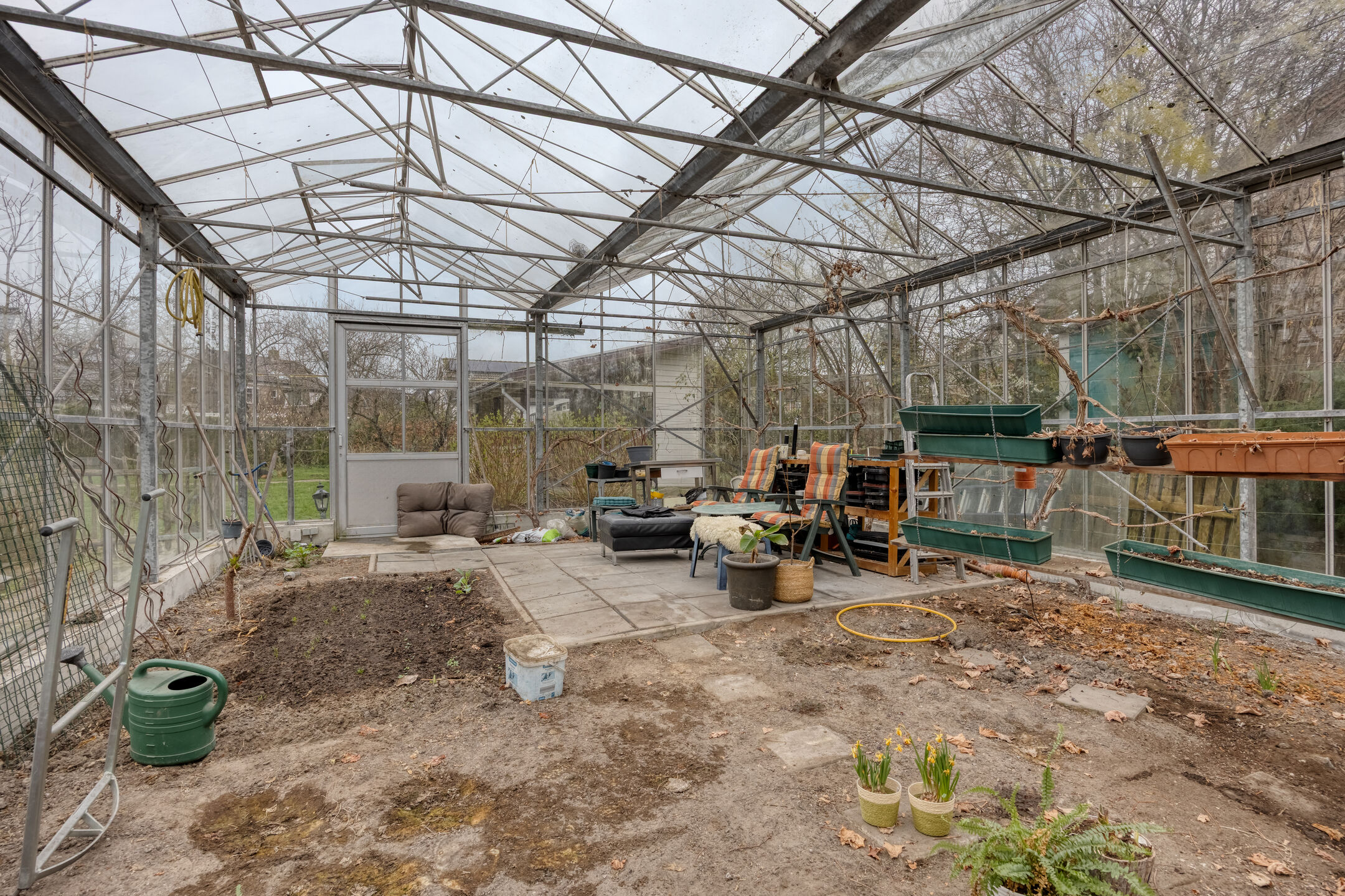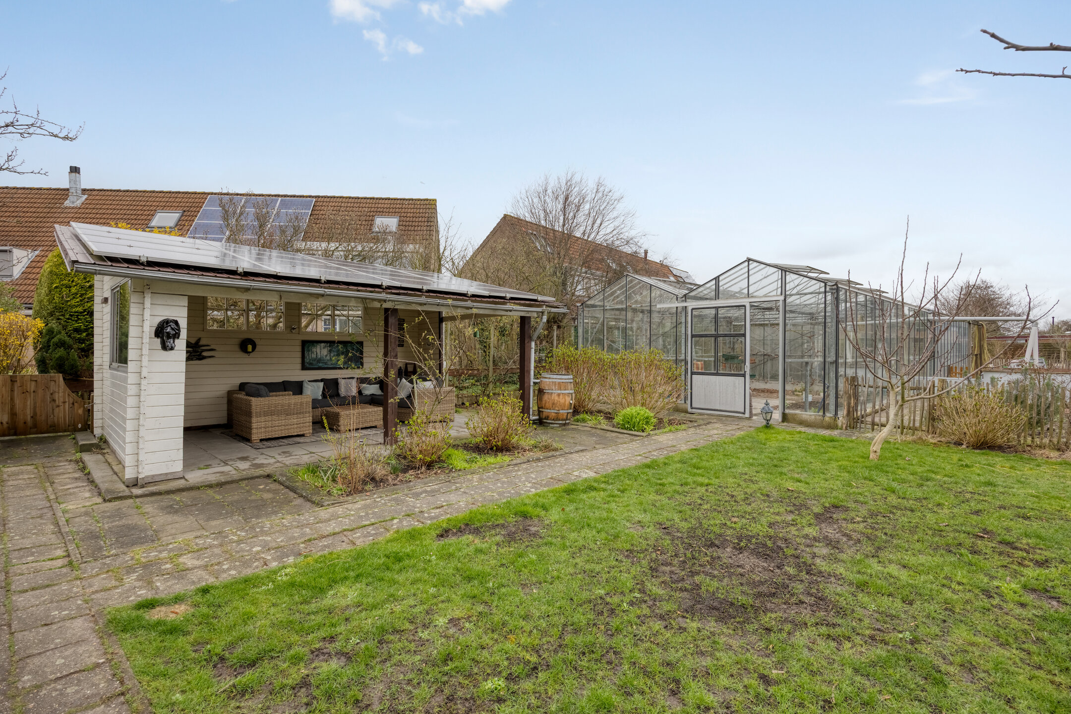 Rondom de woning is volop ruimte aanwezig. Zo beschikt het perceel over een kelder onder de woning, diverse bergingen en een fietsenstalling. In de achtertuin is in 2019 een separate woonunit gerealiseerd, voorzien van een toilet, wateraansluiting en voorbereid op een douche. Deze ruimte is ideaal voor werken aan huis, gastenverblijf of mantelzorg. Verder vindt u hier een overkapping met zonnepanelen en een hobbykas, wat het geheel compleet maakt.