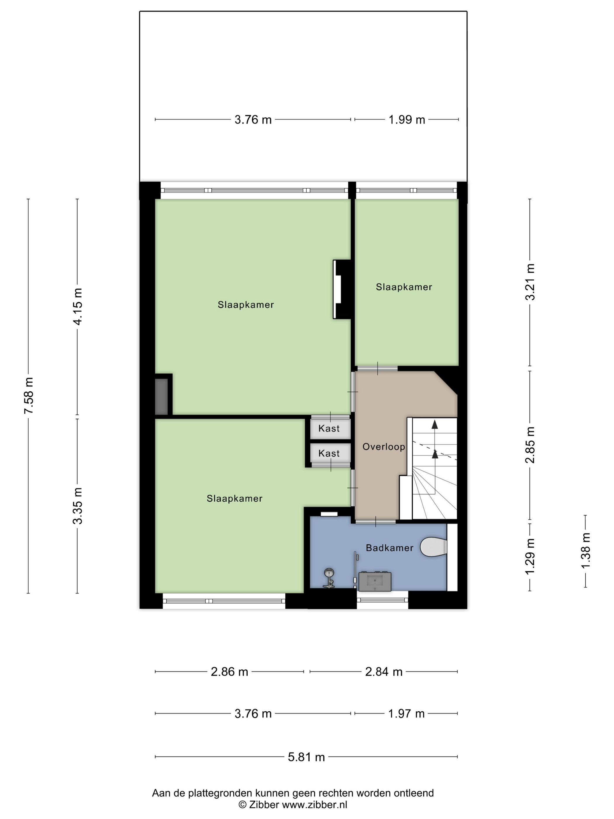 Via de trapopgang bereikt u de eerste verdieping, waar drie slaapkamers zijn gesitueerd van respectievelijk zes, negen en vijftien vierkante meter. Alle kamers zijn voorzien van een nette laminaatvloer. De badkamer op deze verdieping is in 2017 vernieuwd en volledig betegeld. Deze beschikt over een douche, een wastafelmeubel en een tweede toilet.