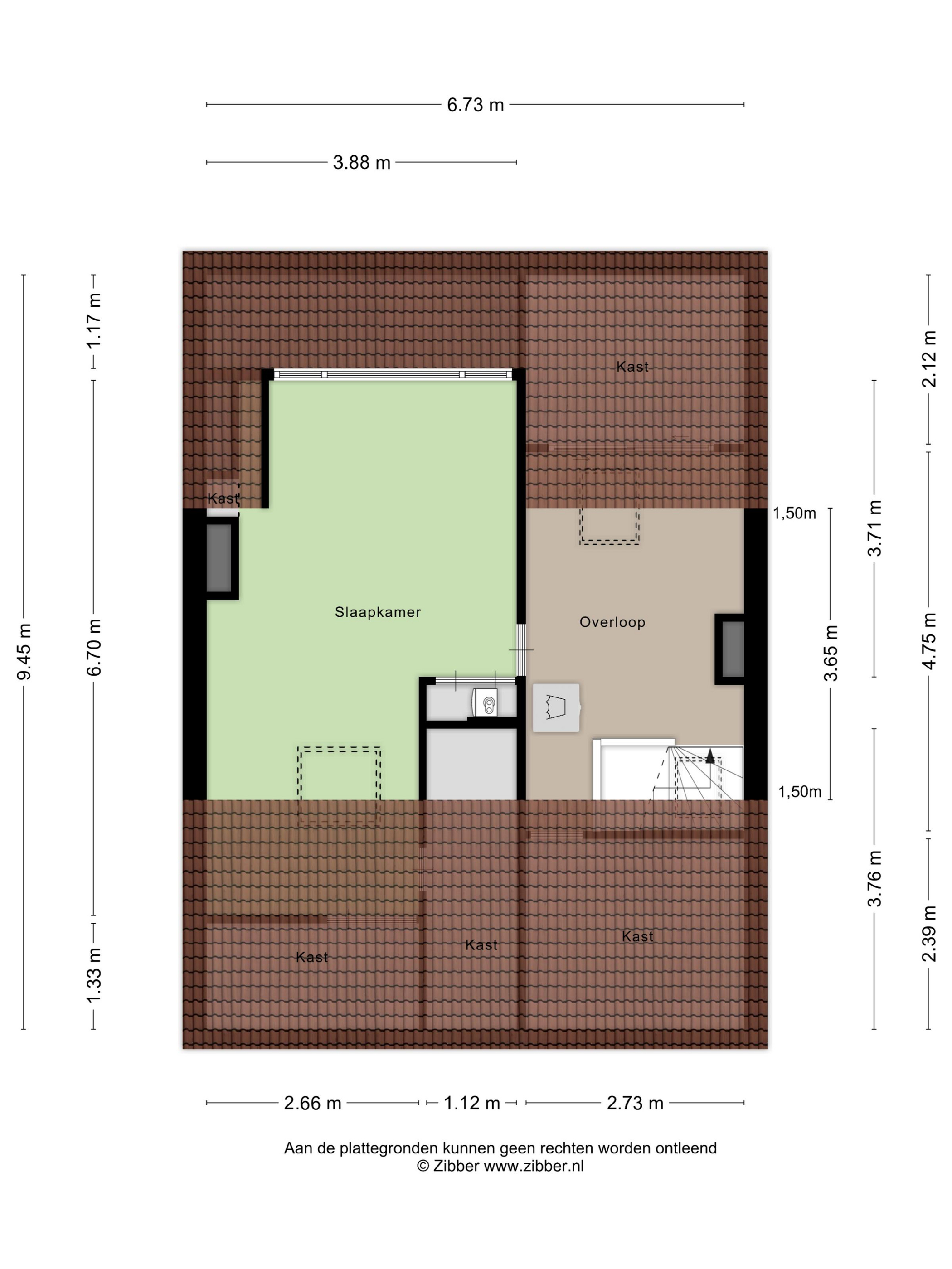 De trapopgang loopt door naar de tweede verdieping. Hier bevindt zich een ruime overloop met de opstelplaats voor de wasmachine en droger en veel praktische kastruimte. Vanuit de overloop is de tweede slaapkamer bereikbaar. Deze kamer, met een oppervlakte van veertien vierkante meter, is voorzien van een dakkapel waardoor de ruimte licht en ruimtelijk aanvoelt. De gehele bovenverdieping is in 2024 opnieuw geisoleerd.