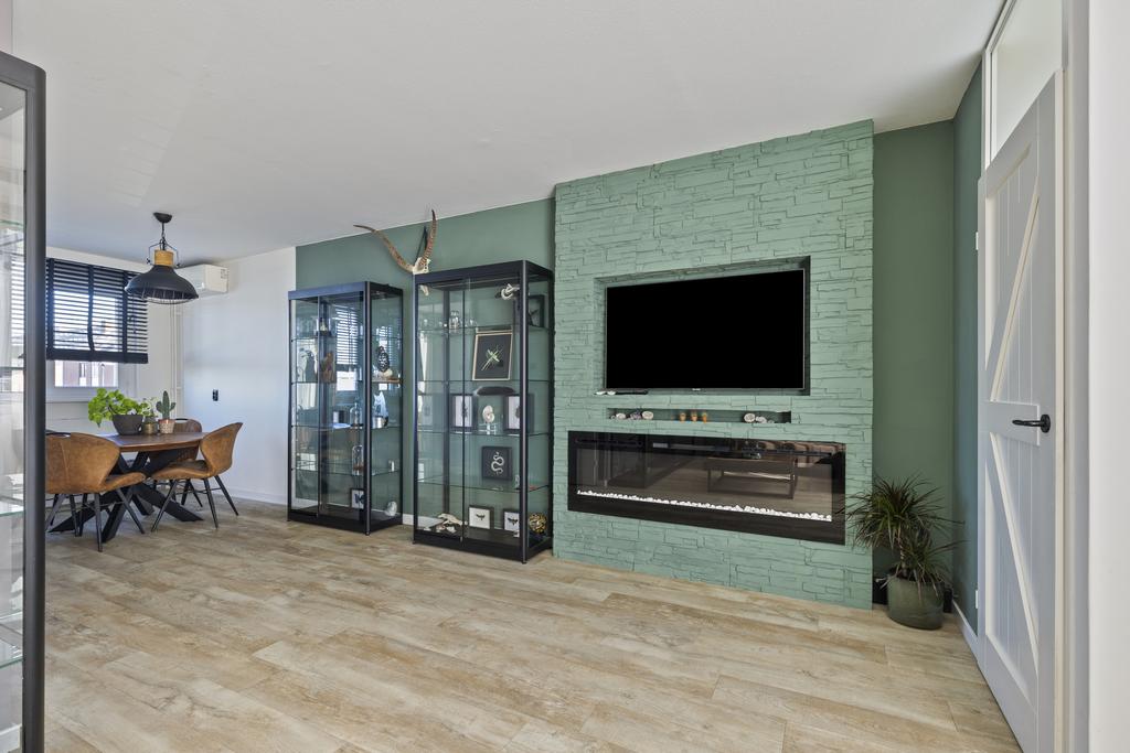 De royale en sfeervolle woonkamer is voorzien van een prachtige PVC-vloer en een stijlvolle cinewall met elektrische haard. De recent vernieuwde radiatoren en een split-unit airco zorgen het hele jaar door voor een aangename temperatuur. Via de woonkamer of voordeur heeft u toegang tot het zonnige terras, dat is afgewerkt met onderhoudsvriendelijke kunststof vlonderplanken. Aan de voorzijde zijn elektrische rolluiken geplaatst voor extra comfort en privacy.
