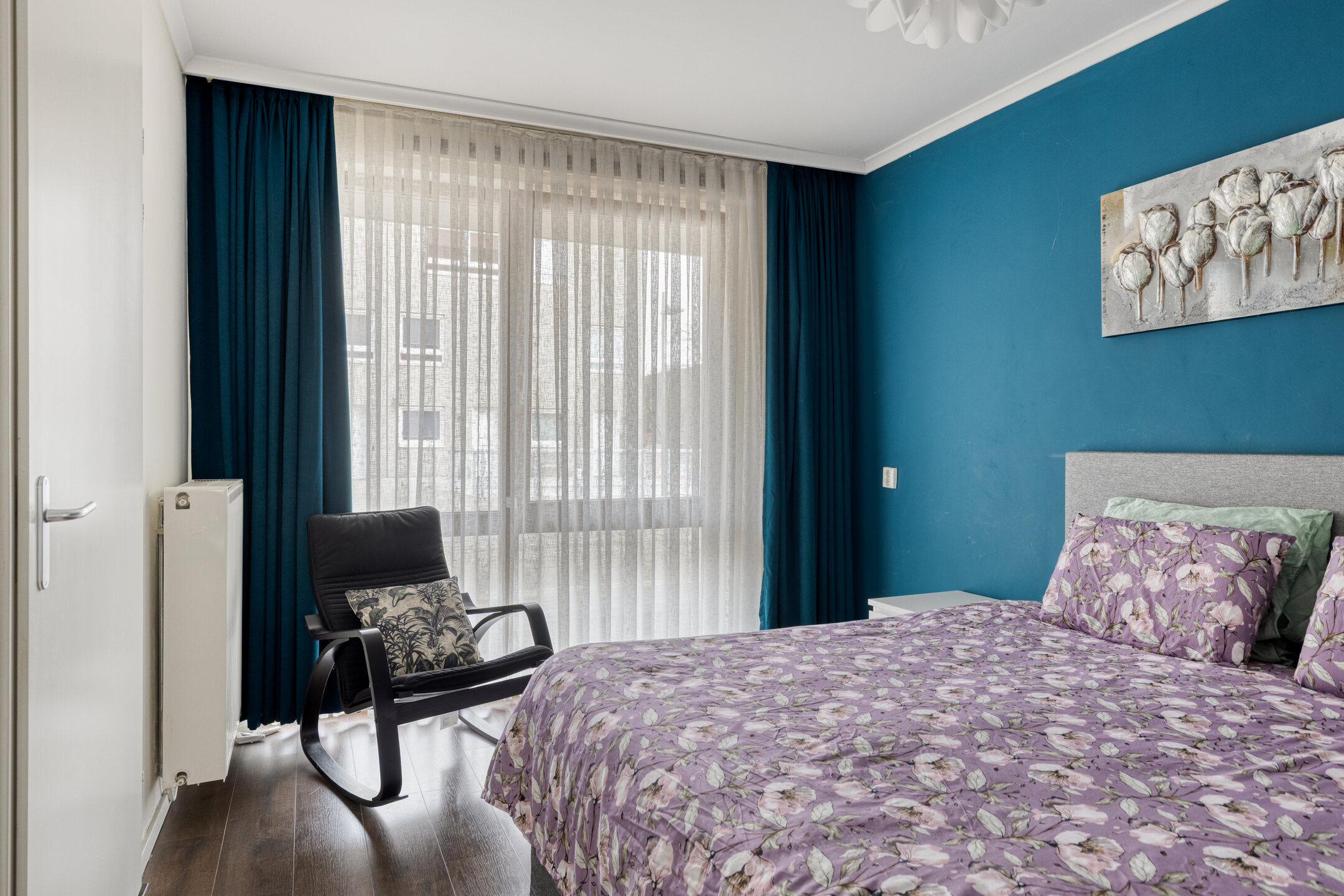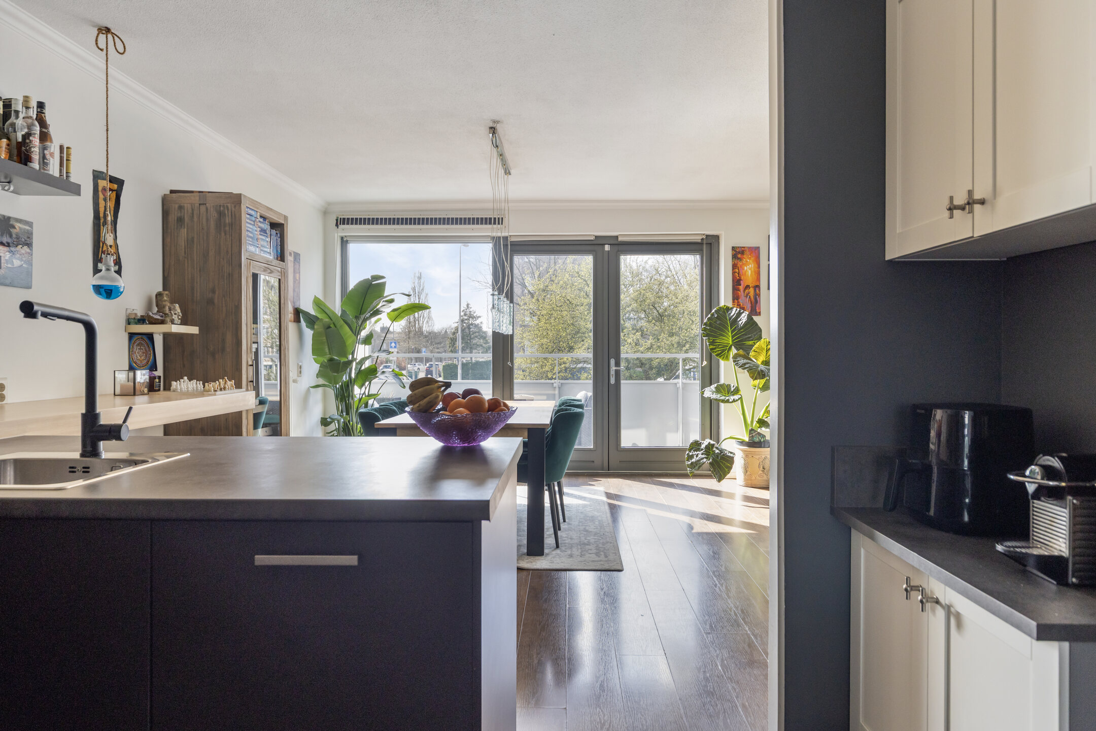 Via de woonkamer heb je toegang tot het zonnige balkon, gelegen op het zuidwesten. Hier geniet je optimaal van de middag- en avondzon – perfect om na een lange dag tot rust te komen.