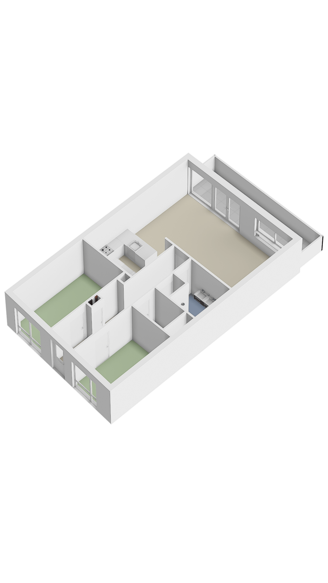 De woning beschikt over twee goed bemeten slaapkamers, ideaal voor een stel of klein gezin. De royale woonkamer met open keuken vormt het hart van het appartement en biedt een fijne, open leefruimte waar je heerlijk kunt ontspannen.